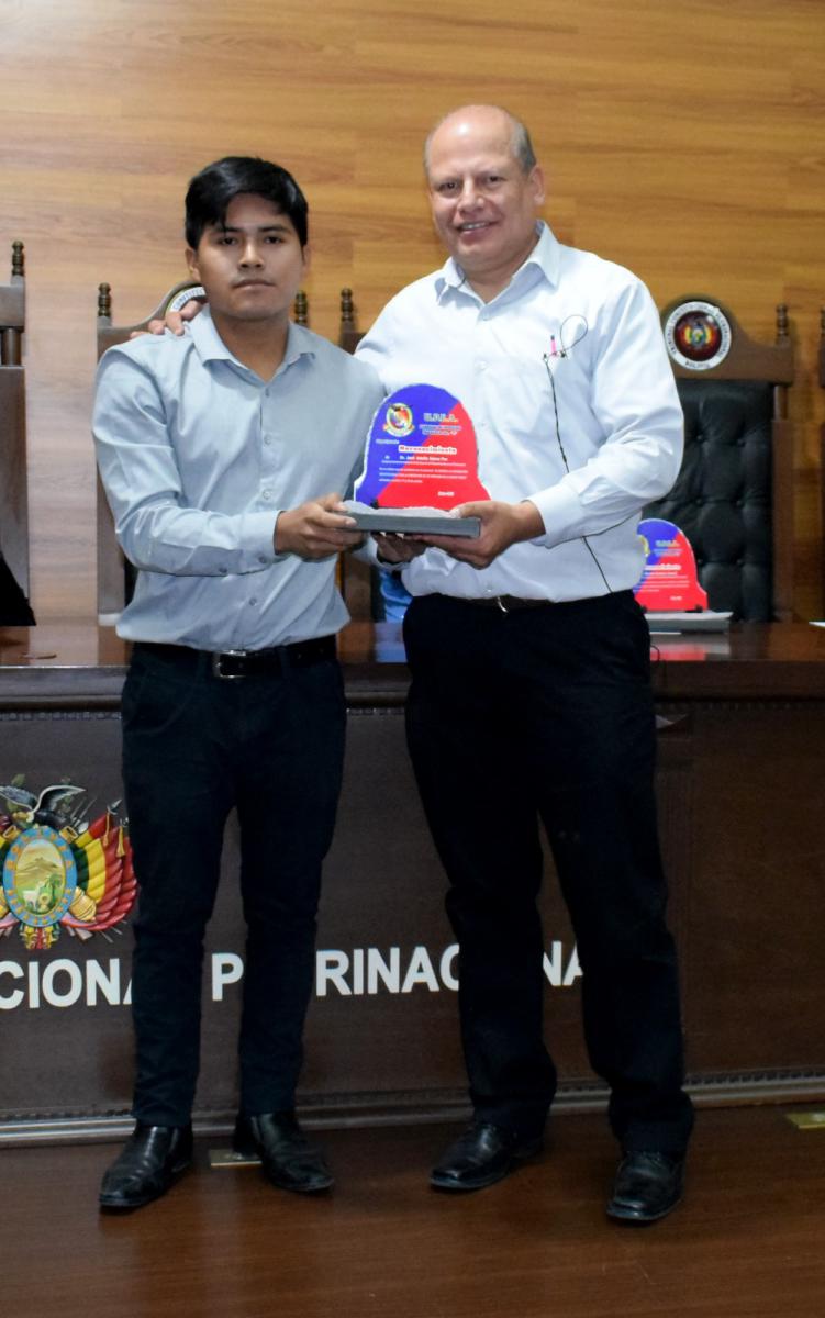En el acto protocolar, el Docente de la Carrera de Derecho, Uziel Mamani Zambrana, manifestó su agradecimiento a la autoridad, por recibir a los estudiantes y contribuir significativamente en el proceso enseñanza aprendizaje.