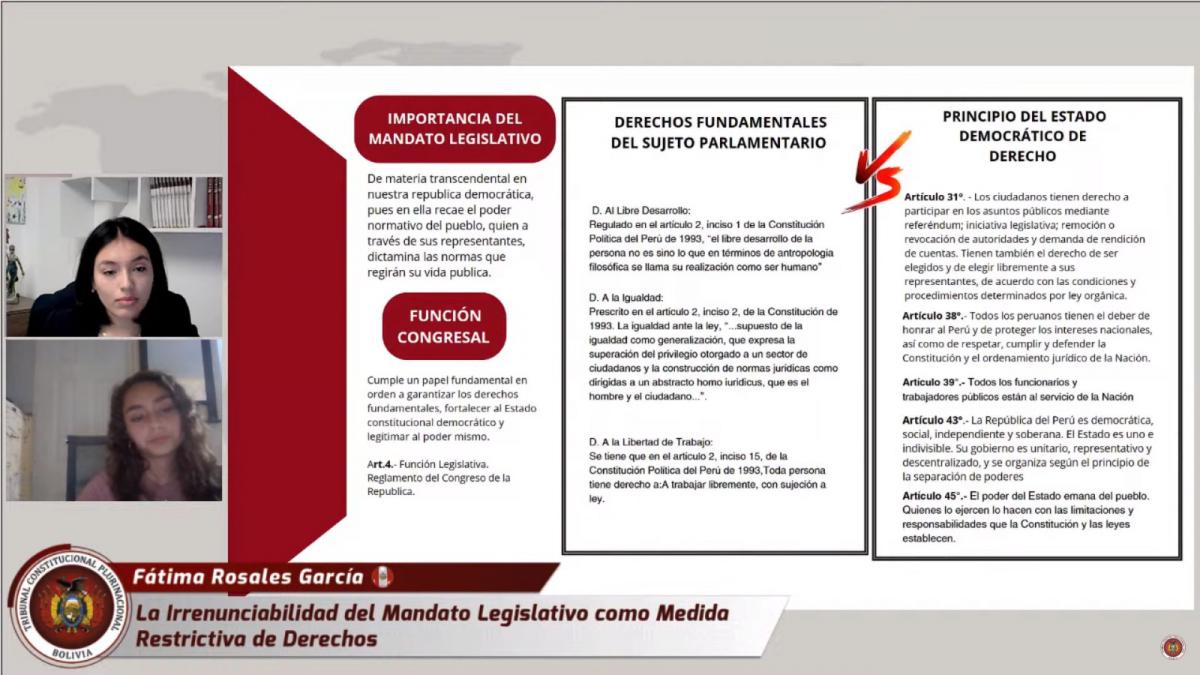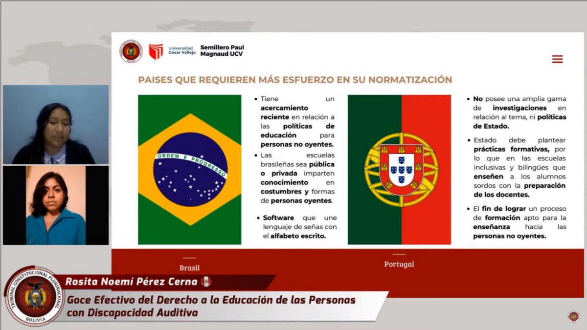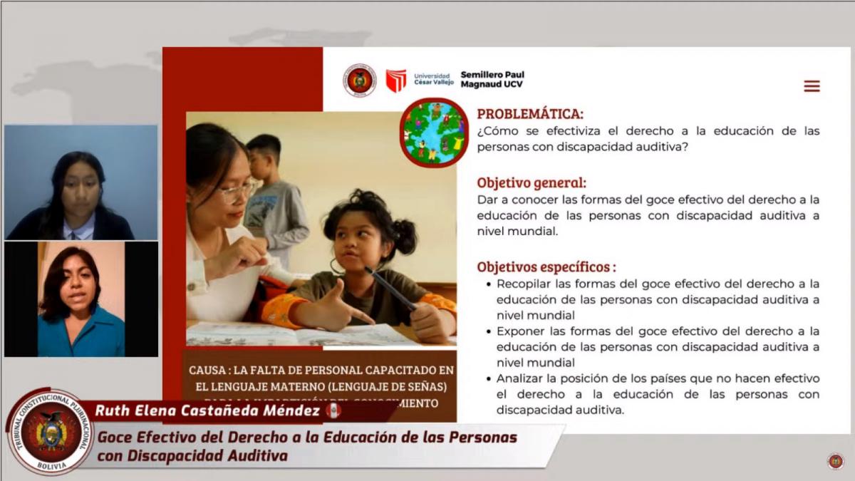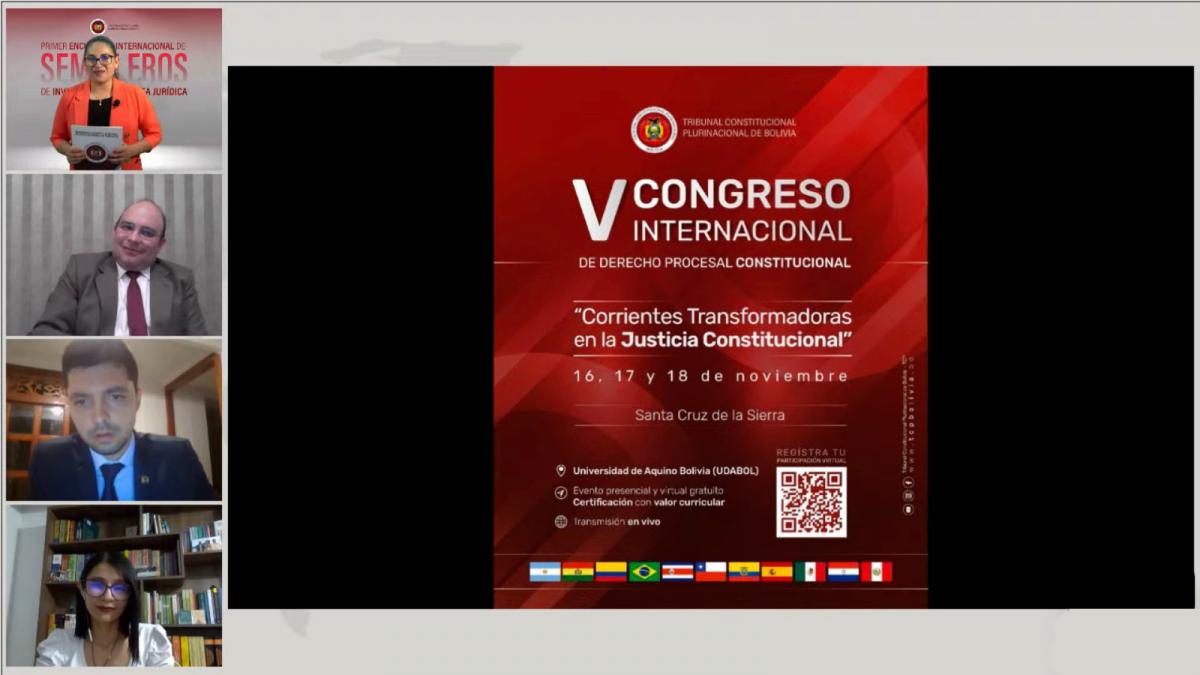 Después de dos jornadas académicas, concluyó el “Primer Encuentro Internacional de Semilleros de Investigación del Área Jurídica” organizado por el Tribunal Constitucional Plurinacional de Bolivia – TCP, que congregó a 21 investigadores e investigadoras de Bolivia, Colombia y Perú, jóvenes estudiantes que presentaron 16 novedosas ponencias ganadoras de diferentes concursos con temáticas trascendentales en el ámbito judicial.