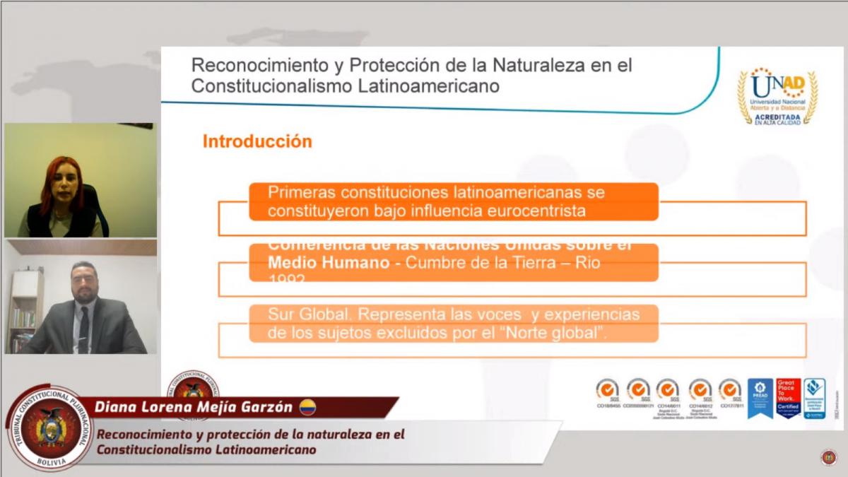 En la ocasión, el profesor colombiano William Felipe Hurtado, destacó la labor del TCP, señalando que, “de todas las Cortes del mundo, el Tribunal Constitucional Plurinacional de Bolivia, bajo la Presidencia del Dr. Paul Franco, es en estos momentos el Tribunal que más apuestas está haciendo desde los esfuerzos académicos para tratar de acercar la academia a esa deuda histórica que tiene que ver con las sociedades y sus trasformaciones”.