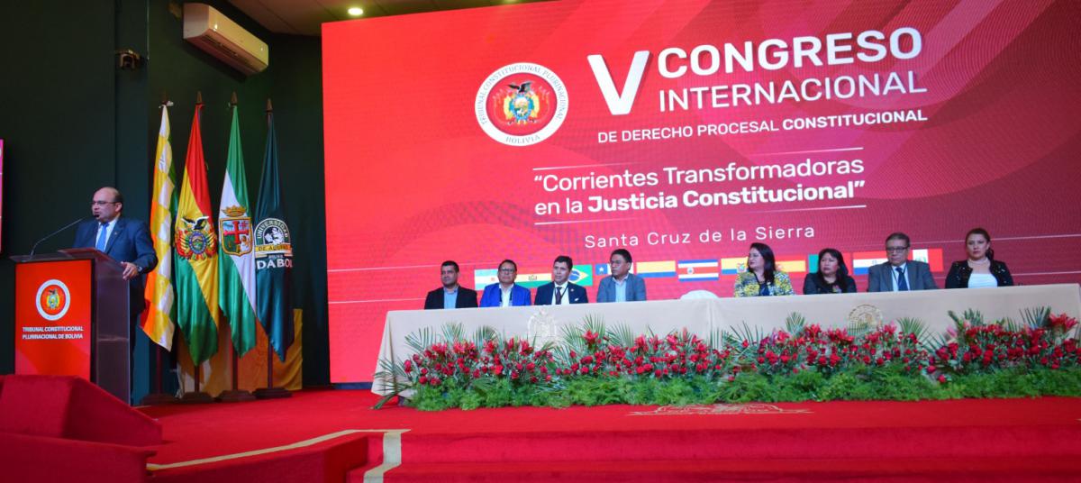 El Tribunal Constitucional Plurinacional de Bolivia – TCP, inauguró el V Congreso Internacional de Derecho Procesal Constitucional, “Corrientes Transformadoras en la Justicia Constitucional”, con el objetivo de reflexionar sobre los futuros desafíos que le deparan a juzgadores de esta jurisdicción, encargados de proteger los derechos fundamentales y ejercitar el control de constitucionalidad, junto a 29 renombrados juristas de Bolivia, Argentina, Brasil, Colombia, Costa Rica, Chile, Ecuador, España, México, Perú y Paraguay.