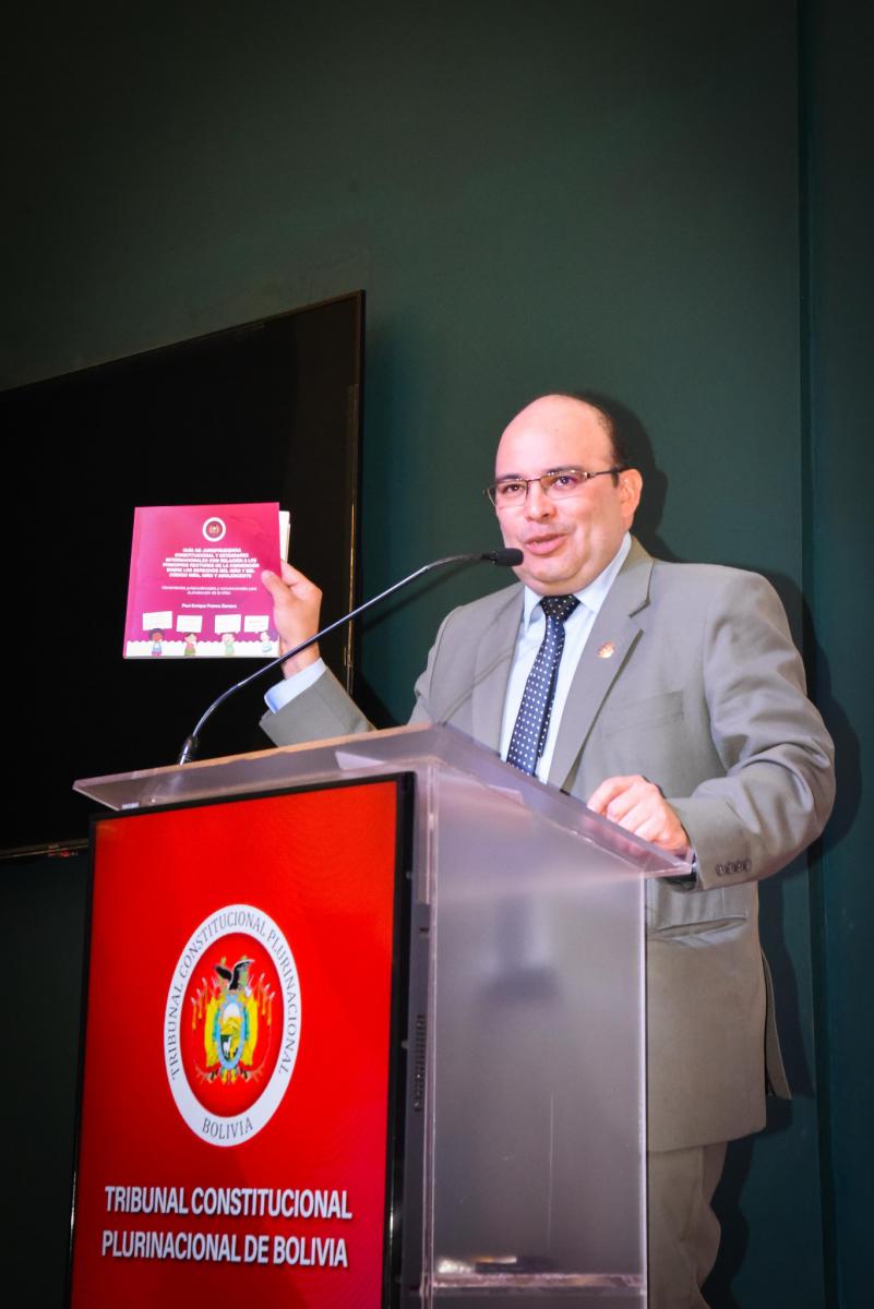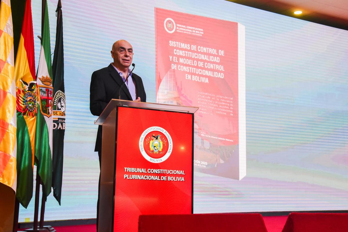 Igualmente, la Entidad presentó el Libro denominado: “Sistemas de Control de Constitucionalidad y el Modelo de Control de Constitucionalidad en Bolivia” del Magistrado del TCP, MSc. Carlos Alberto Calderón Medrano, obra literaria comentada en el Congreso por el Dr. Jorge Antonio Asbún Rojas, Abogado Constitucionalista y Miembro de la Academia Boliviana de Estudios Constitucionales.