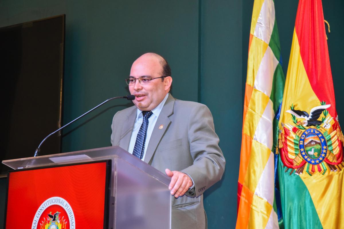 Al cierre de la actividad académica organizada por el Tribunal Constitucional Plurinacional de Bolivia (TCP), su Presidente, Ph.D. Paul Enrique Franco Zamora, trasmitió el agradecimiento y reconocimiento de la Sala Plena a las expositoras y expositores por compartir en este magno evento sus conocimientos, posiciones y experiencias desde el derecho comparado, así como a la Universidad de Aquino Bolivia (UDABOL), cuyo Salón Auditorio fue el escenario que congregó a más de 500 personas que participaron de forma presencial, así como a la comunidad virtual nacional e internacional que siguió la transmisión por las redes sociales de la Entidad y a los 15.000 inscritos.