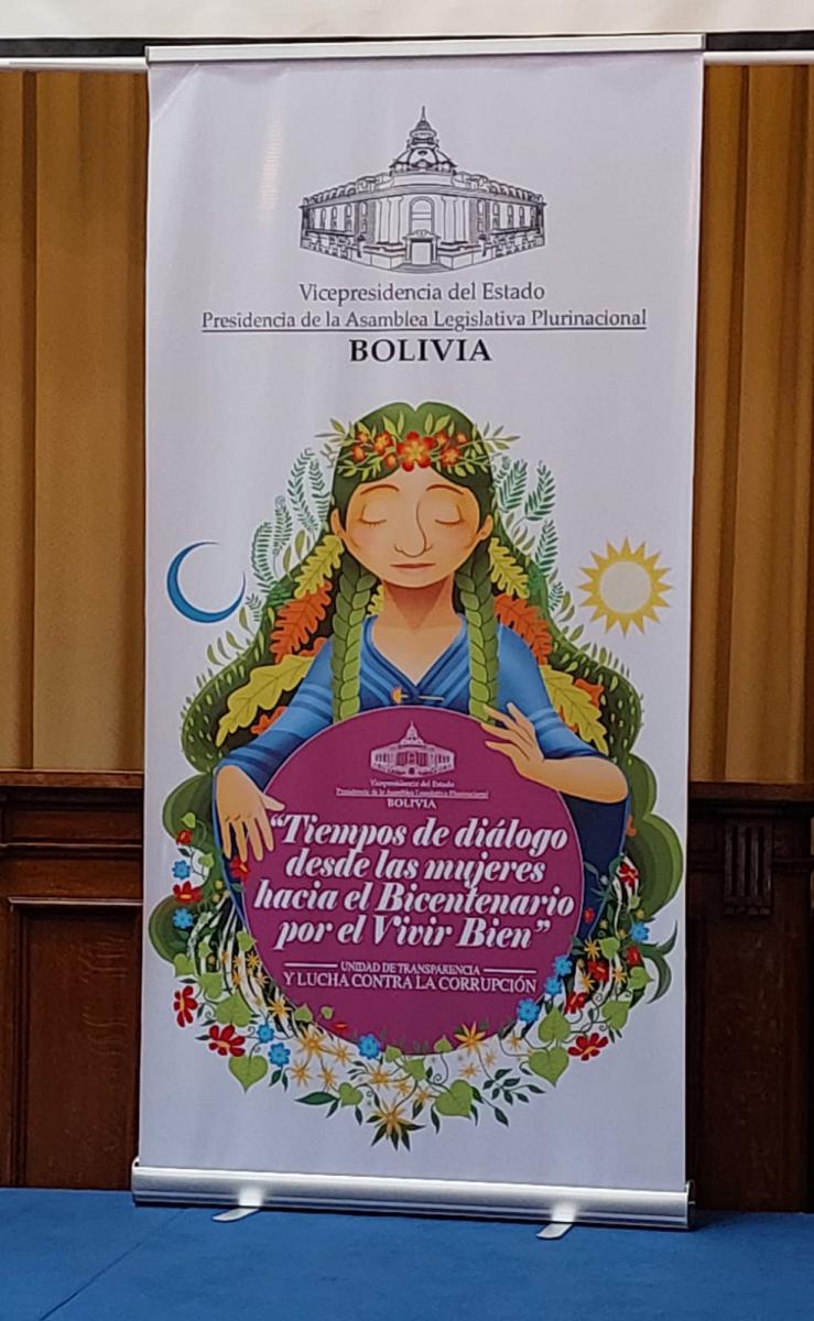 La Magistrada del Tribunal Constitucional Plurinacional de Bolivia (TCP) y Presidenta del Comité de Género del OJ y TCP, MSc. Karem Lorena Gallardo Sejas, participó esta jornada en el Encuentro y Cierre del Primer Ciclo de Conversatorios denominado: «Tiempos de diálogo desde las mujeres hacia el Bicentenario por el Vivir Bien».