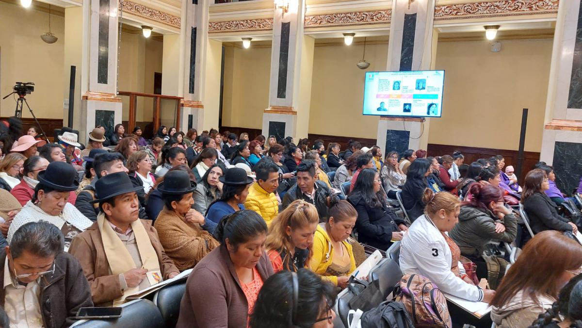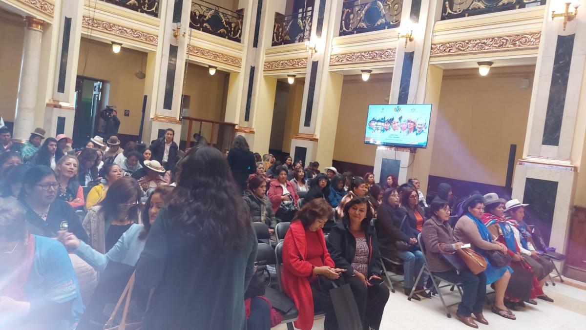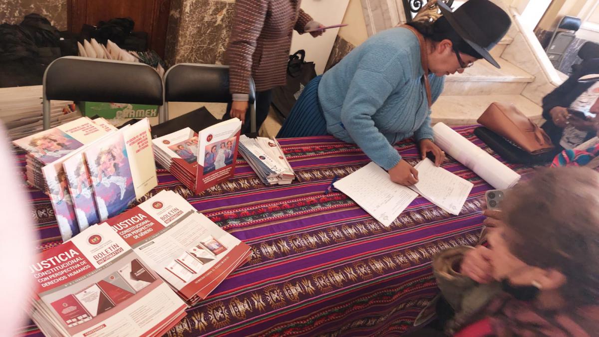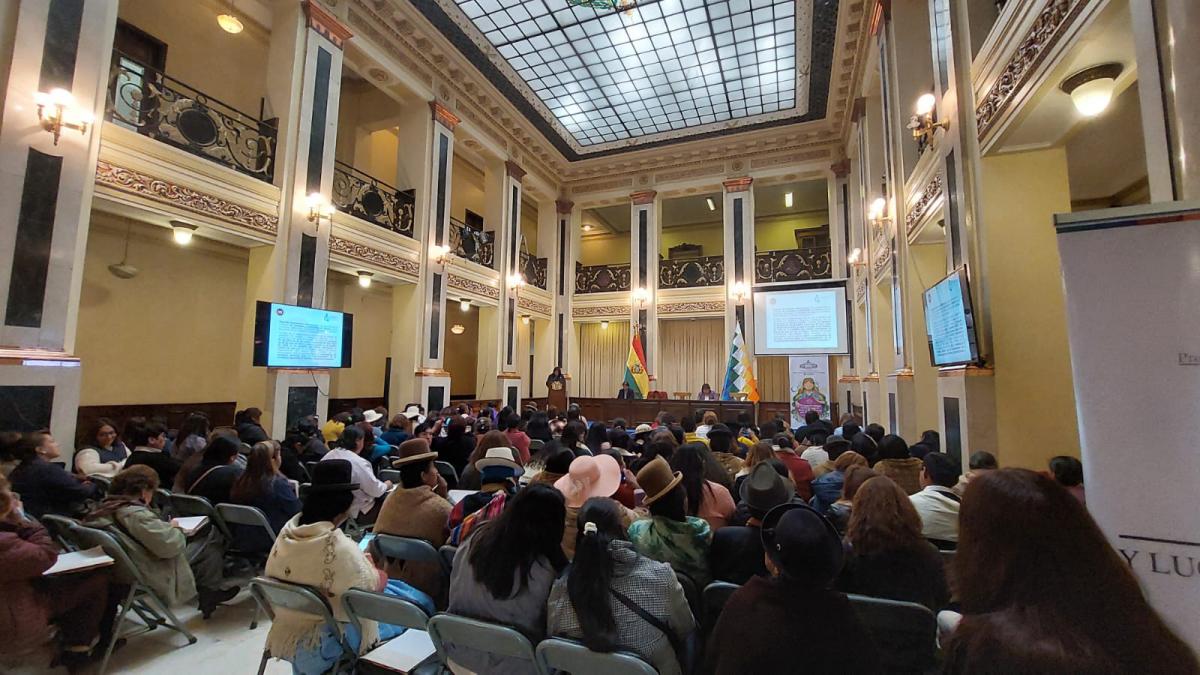 El hall del Edificio de la Presidencia del Estado Plurinacional de Bolivia, acogió a más de 200 mujeres para ser parte del cierre de conversatorios, donde la autoridad participó visibilizando el trabajo de las instancias que imparten justicia en la que se realzó la jurisprudencia del Tribunal Constitucional Plurinacional.