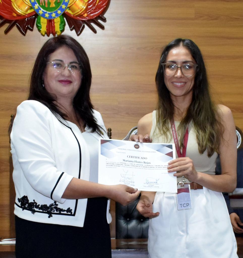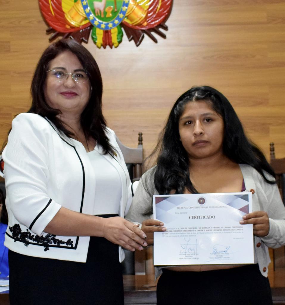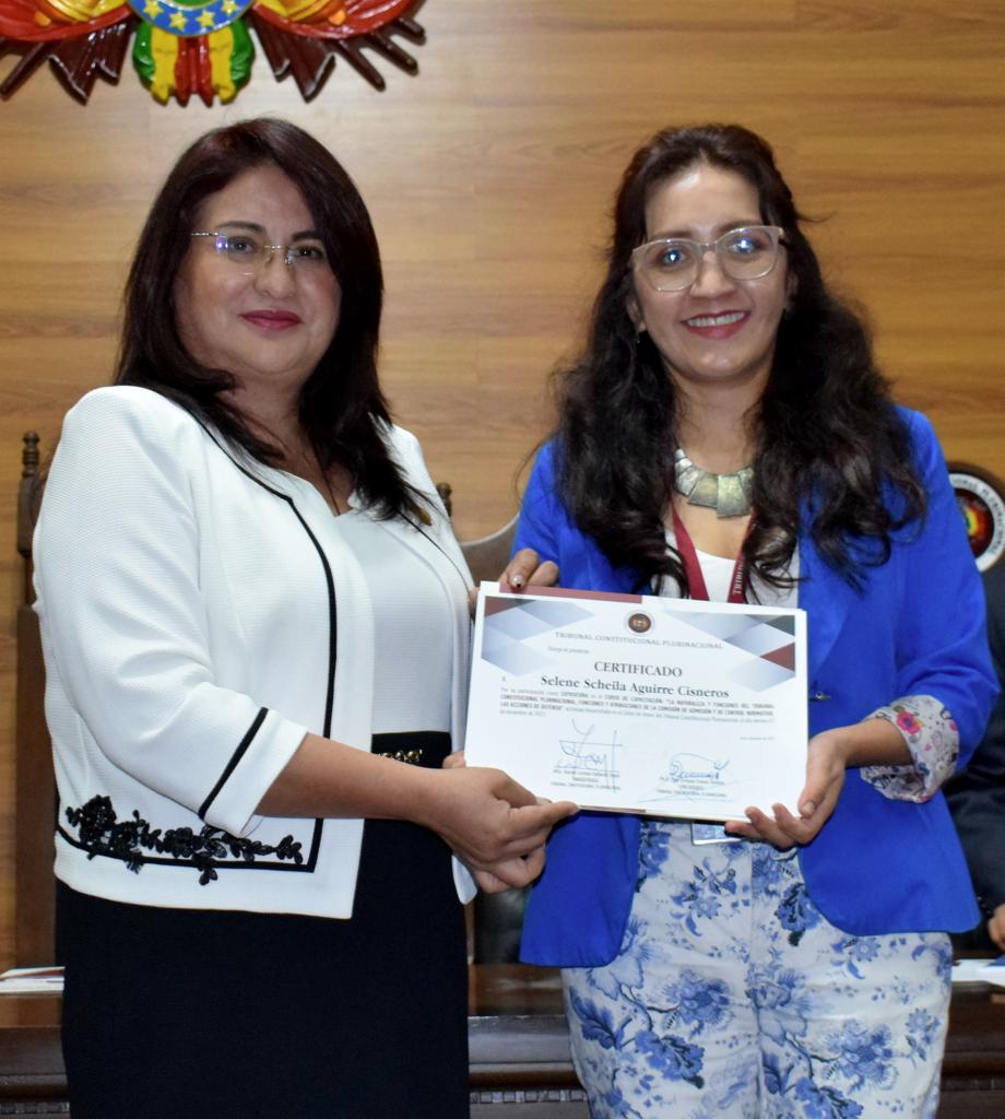 Cabe resaltar además que, al concluir el evento, se realizó la entrega de certificados a las expositoras y participantes, así como material institucional impreso y digital sobre la labor del Tribunal Constitucional Plurinacional.