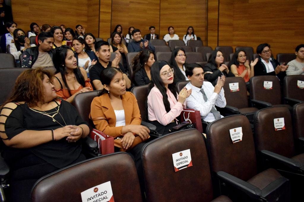 “Es un orgullo para mi persona como cochabambina recibirlos en el TCP, agradezco la formación que se recibe en San Simón, felicito a las autoridades y docentes por el trabajo que vienen desarrollando, e insto a ustedes para que sean profesionales que dignifiquen la profesión de abogadas y abogados. Espero el día de mañana tenerlos a ustedes en el lugar en el que nosotros nos encontramos, ejerciendo funciones como abogados, juezas, jueces, vocales, magistradas y magistrados, impartiendo justicia con conocimiento y ética”, manifestó la autoridad.