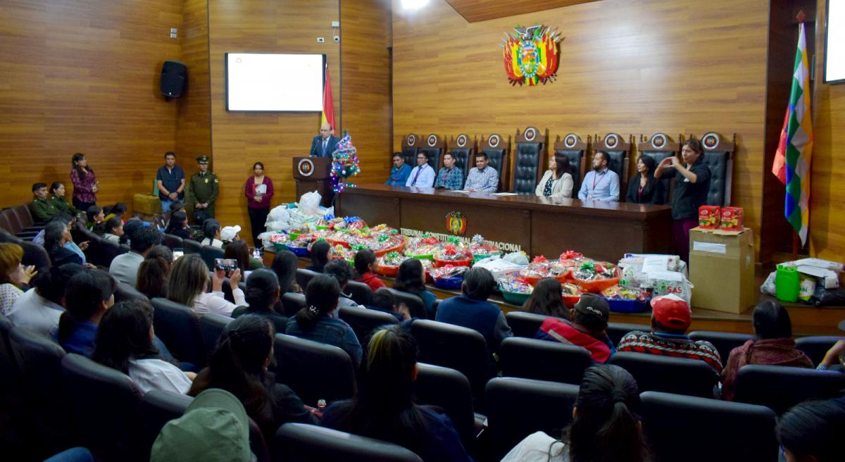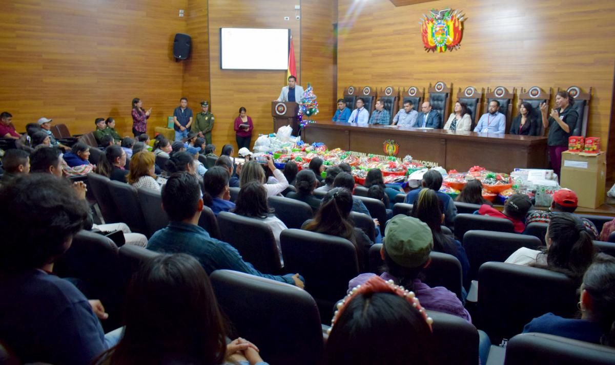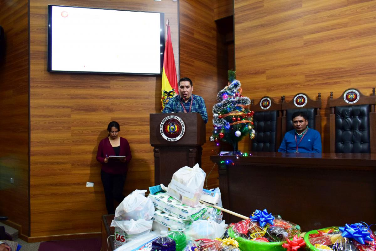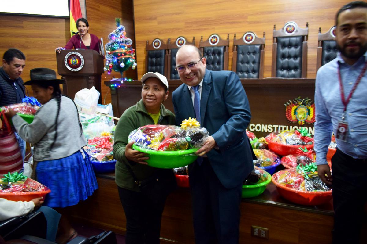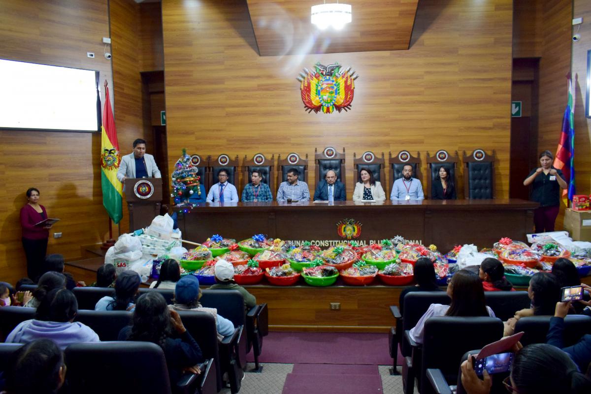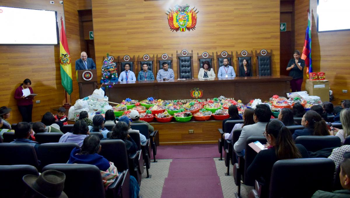 Hoy, 20 de diciembre, en vísperas de la Navidad, el Tribunal Constitucional Plurinacional de Bolivia (TCP), realizó un emotivo y especial acto de entrega de canastones, ayuda benéfica y solidaria a diferentes personas e instituciones de la ciudad de Sucre.