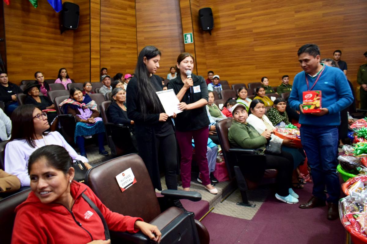 De la misma forma, la institución apoyó con insumos para una chocolatada vecinal para el Barrio Vuelta Grande del Distrito 6 de la ciudad de Sucre, e hizo entrega de vales navideños para un niño y una universitaria que presentaron afecciones en su salud.