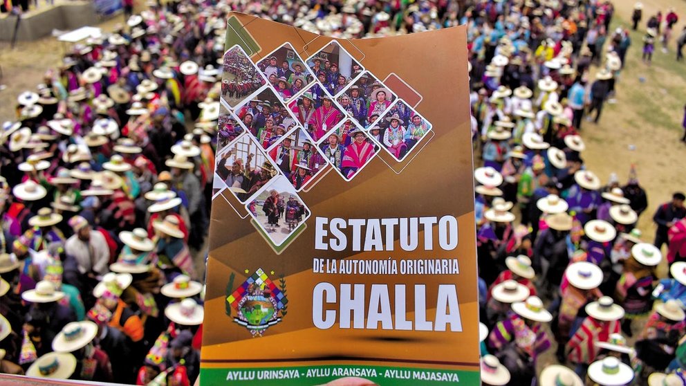 «Challa: el territorio que abandera la autonomía indígena con liderazgo femenino. Su caso se convirtió en un referente para otros territorios porque logró el respaldo legal del TCP en tiempo récord pese a la pandemia; sin embargo, los comunarios relatan que demandó esfuerzo y sacrificios. Aunque hay poca presencia de mujeres en puestos de poder, las lideresas impulsan a otras».