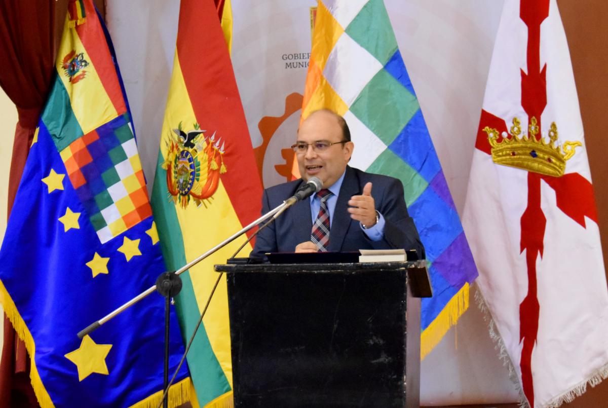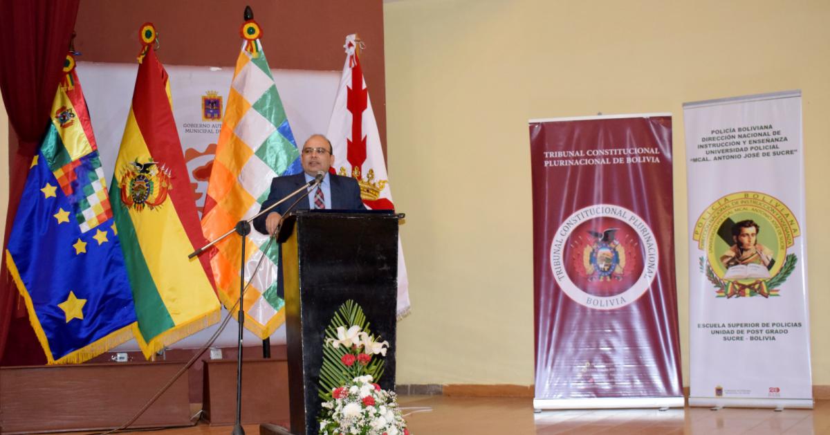 El Presidente del TCP, durante su intervención, se refirió a la importancia de trabajar con una perspectiva de Derechos Humanos, conocer y garantizar lo establecido en la Constitución Política del Estado, el Bloque de Constitucionalidad y el Sistema Universal de los Derechos Humanos para promover la consolidación de un Estado Constitucional de Derecho, así como al contenido de la Sentencia Constitucional Plurinacional 2299/2012.