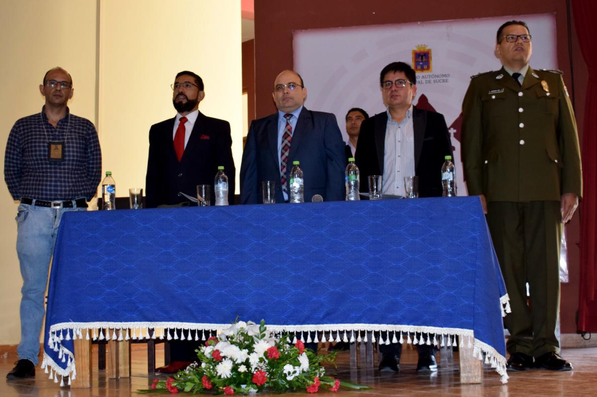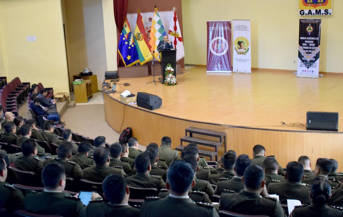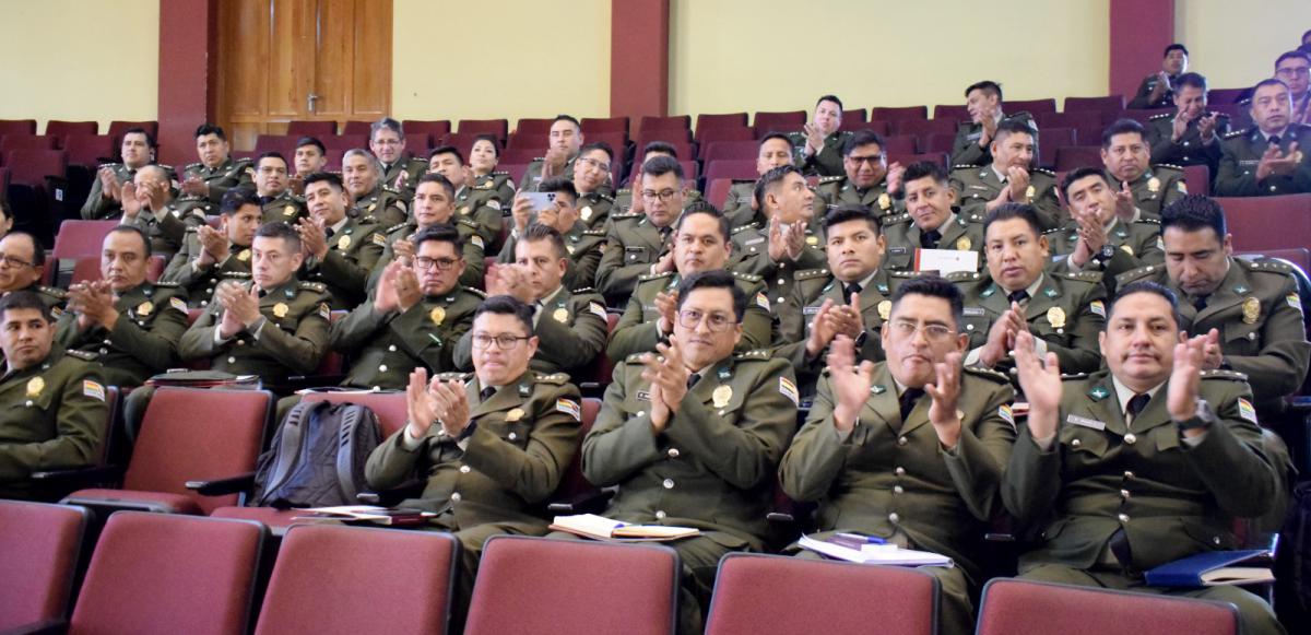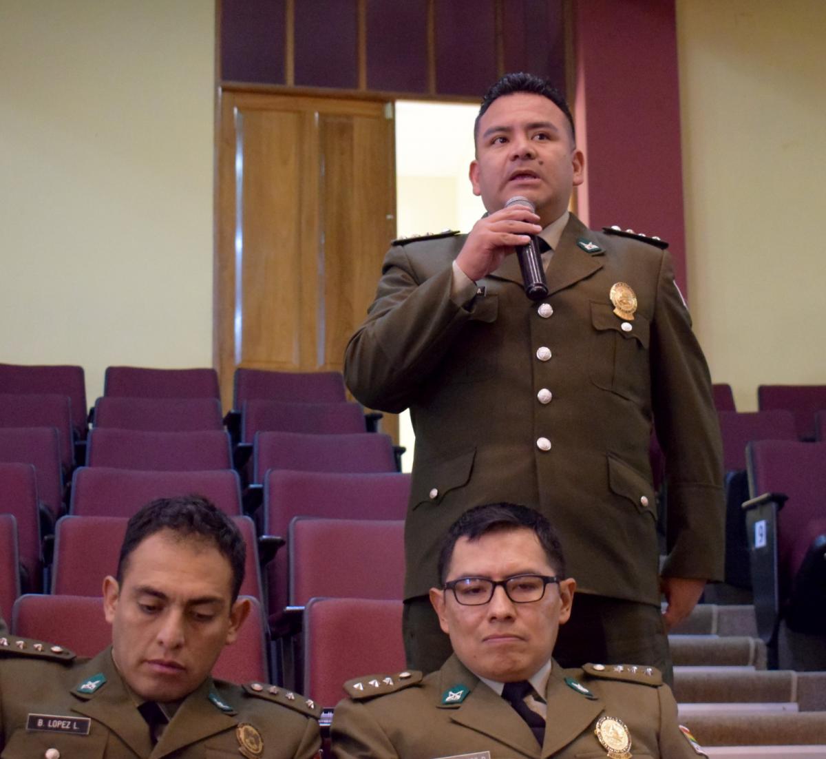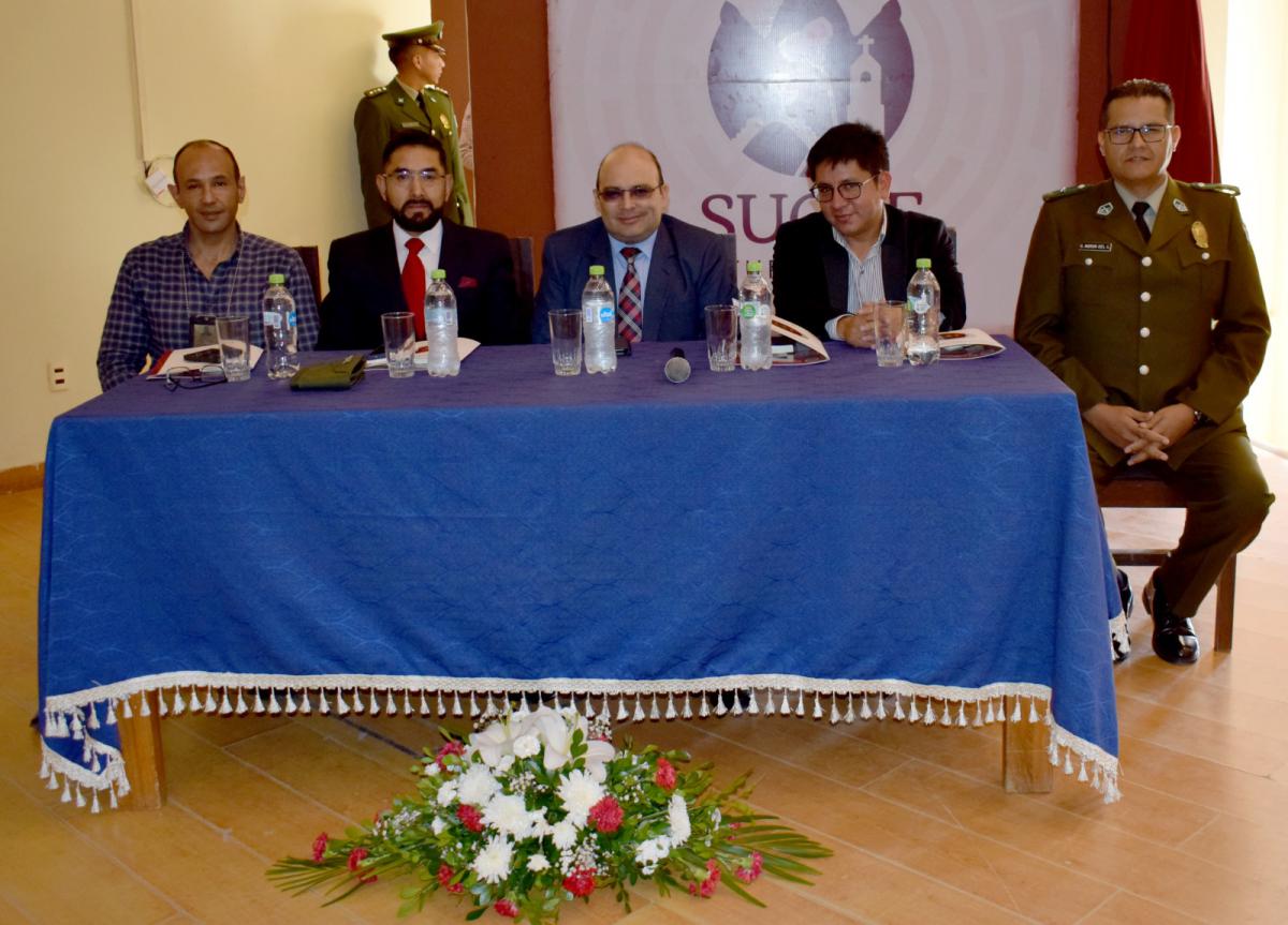 En el marco de la coordinación interinstitucional y a invitación de la Escuela Superior de Policías Universidad Policial “Mariscal Antonio José de Sucre” – Filial Sucre, el Presidente del Tribunal Constitucional Plurinacional, Ph.D. Paul Enrique Franco Zamora, participó como expositor en el Seminario Taller “Situación de los Derechos Humanos en Bolivia y Uso de la Fuerza Pública”, dirigido a 120 Oficiales en Grado de Capitán de la Escuela Superior de Policías.