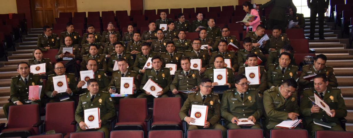 El Seminario Taller se desarrolló hoy, 11 de marzo, en instalaciones de la Villa Bolivariana de la ciudad de Sucre, en el marco del Diplomado en Gestión Pública Policial, del que forman parte policías con grado de Capitán de los nueve departamentos del país.