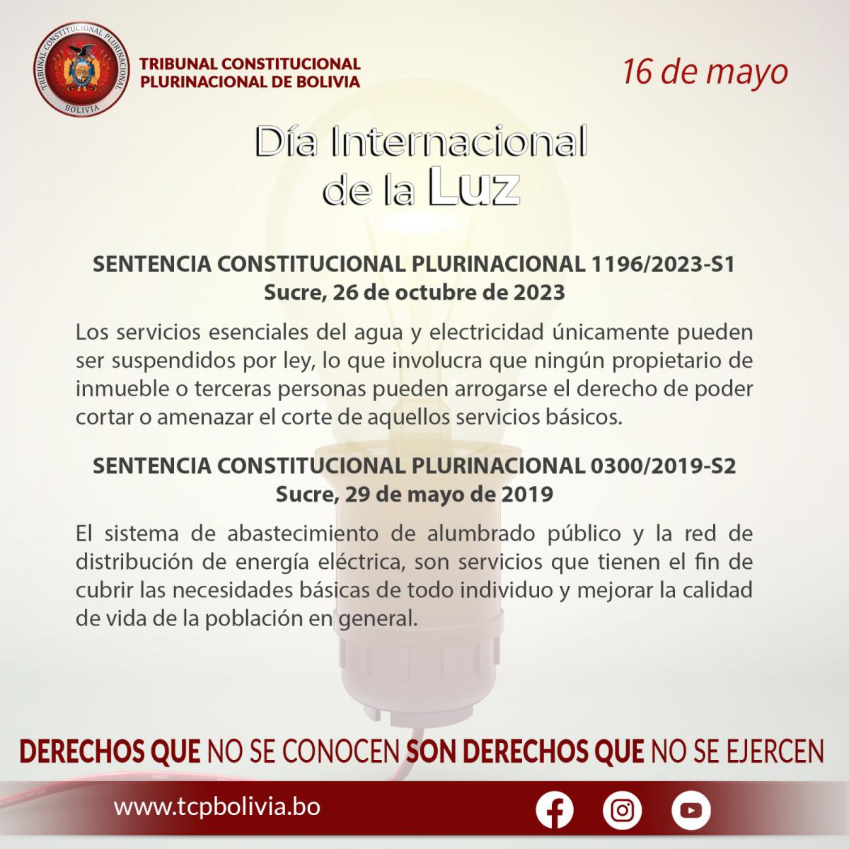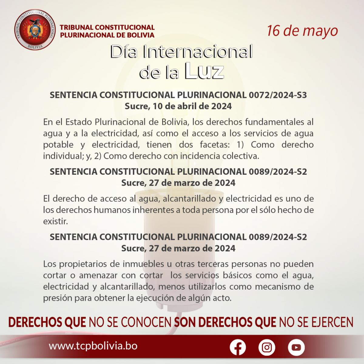 En esta oportunidad, damos a conocer las Sentencias Constitucionales Plurinacionales emitidas por el Tribunal Constitucional Plurinacional de Bolivia (TCP) que protegen el derecho fundamental a la electricidad de la población.