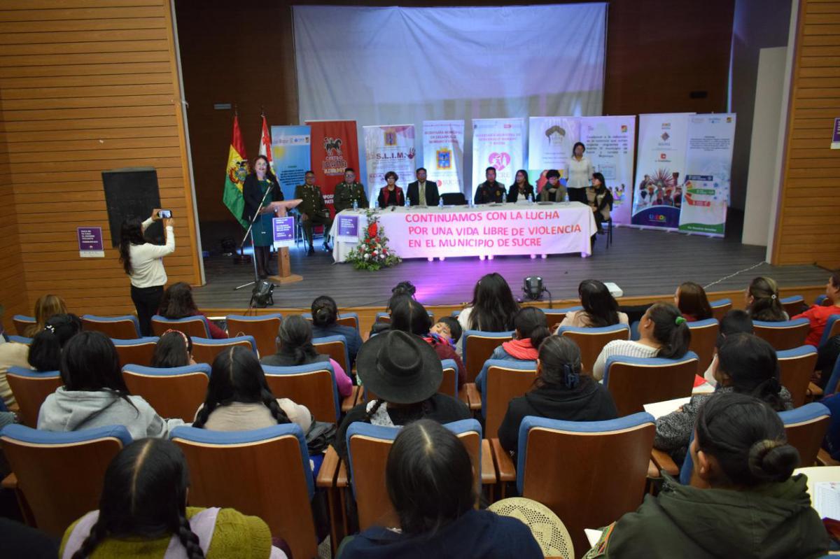 En horas de la mañana en instalaciones del salón PUKARA del Centro Cultural: «LA SOMBRERERÍA», se llevó a cabo el Seminario denominado: “EN BUSCA DE UN MEJOR ACCESO A LA JUSTICIA, POR UNA VIDA LIBRE DE VIOLENCIA EN EL MUNICIPIO DE SUCRE», en el que participaron autoridades nacionales y departamentales, así como instituciones que trabajan en defensa de mujeres, víctimas de violencia, Club de Madres y otros.