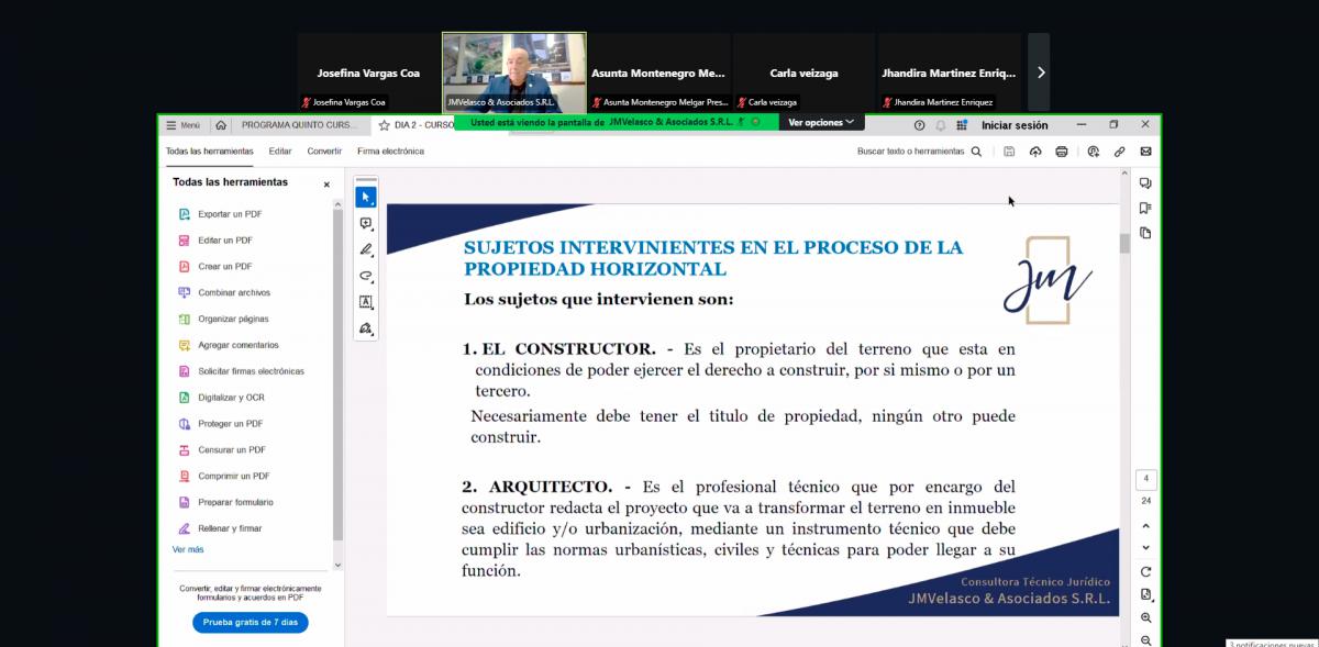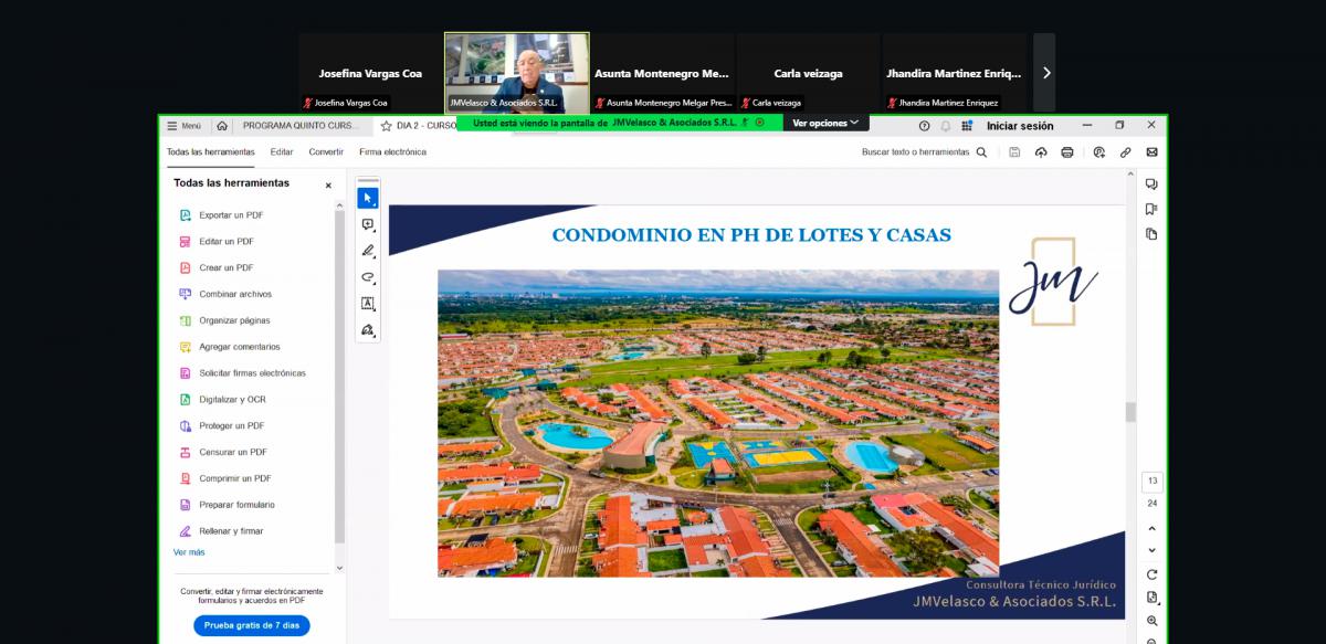 La actividad académica se desarrolló el 31 de mayo de 2024 en el Aula Virtual de la Academia Plurinacional de Estudios Constitucionales del TCP, con el objetivo de actualizar y fortalecer los conocimientos del personal de la institución en el manejo y gestión de propiedades horizontales, derechos fundamentales protegidos especialmente, obligaciones de los copropietarios, administración de bienes comunes, sujetos intervinientes y resolución de conflictos.