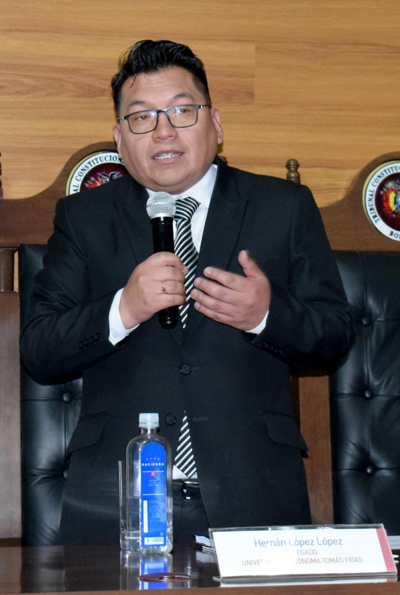 A la conclusión de la actividad, el Dr. Hernán López López, Docente de la Carrera de Derecho de la Universidad Tomás Frías, agradeció a las autoridades del TCP por el seminario impartido a la juventud universitaria de Potosí, así como por los materiales y certificados otorgados.