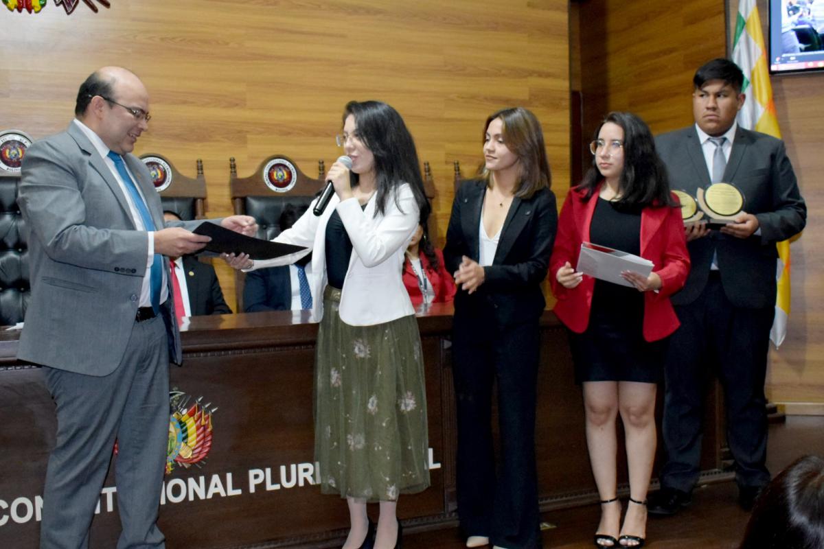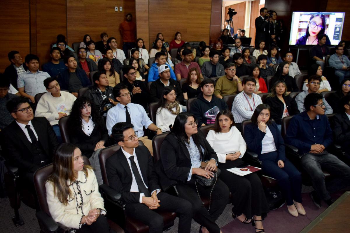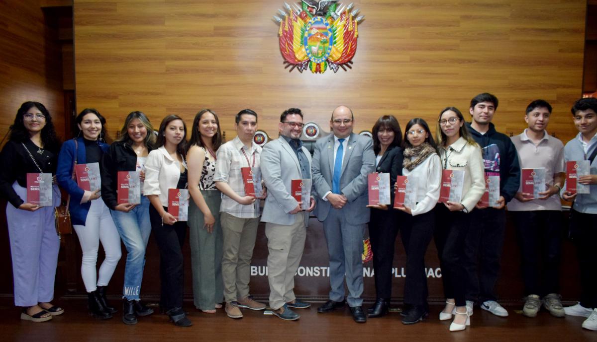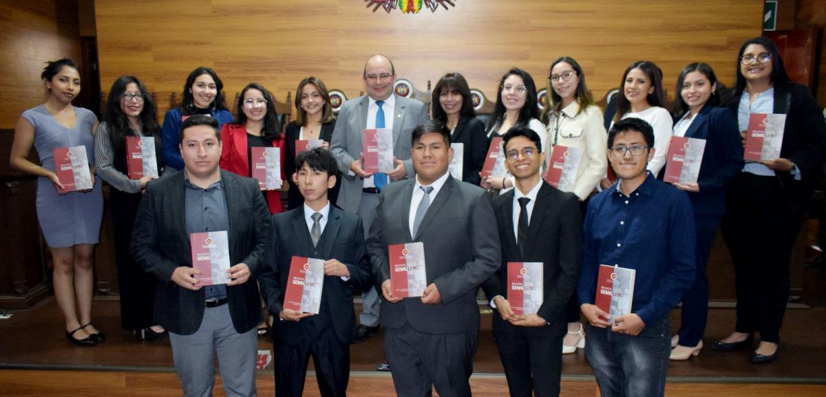 La presentación de la “Revista Semillero” congregó de forma presencial a las autoras y autores, estudiantes de las Sociedades Científicas de las Carreras de Derecho de las universidades públicas y privadas de Bolivia, y de forma virtual a los jóvenes investigadores y a los docentes tutores de Colombia y Perú, quienes de forma unánime felicitaron al Presidente y a la Sala Plena del TCP, por impulsar la investigación desde el ámbito institucional.