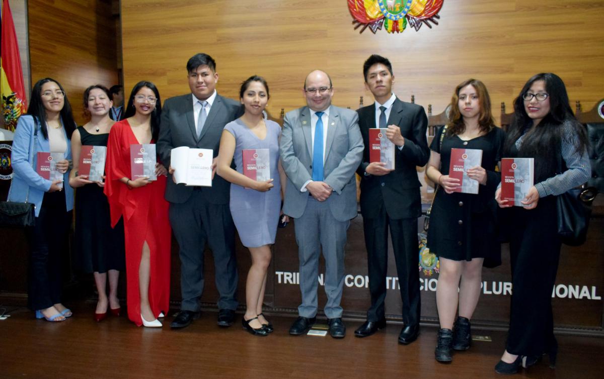 En un acto especial, el Tribunal Constitucional Plurinacional (TCP), presentó la “Revista Semillero”, publicación institucional impresa que contiene 12 artículos académicos escritos por las y los integrantes del “Primer Semillero de Investigación Constitucional del TCP” y 12 ponencias del “Primer Encuentro Internacional de Semilleros de Investigación del Área Jurídica”, donde participaron jóvenes investigadoras e investigadores de Bolivia, Colombia y Perú.