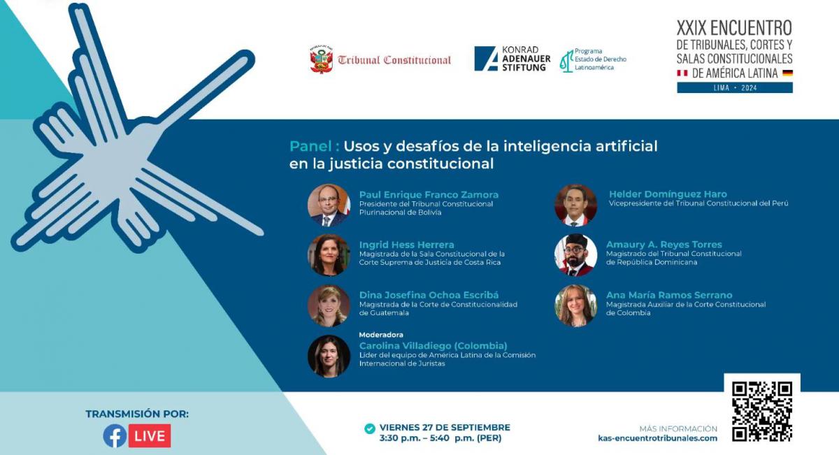 El Presidente del Tribunal Constitucional Plurinacional de Bolivia (TCP) Ph.D. Paul Enrique Franco Zamora, a invitación del Programa Estado de Derecho para Latinoamérica de la Fundación Konrad Adenauer y el Tribunal Constitucional del Perú, participó como panelista en el “XXIX Encuentro de Tribunales, Cortes y Salas Constitucionales de América Latina”, donde dio a conocer su propuesta de implementar un Sistema de Predictibilidad Constitucional para fortalecer el acceso a la justicia haciendo uso de las tecnologías de información.