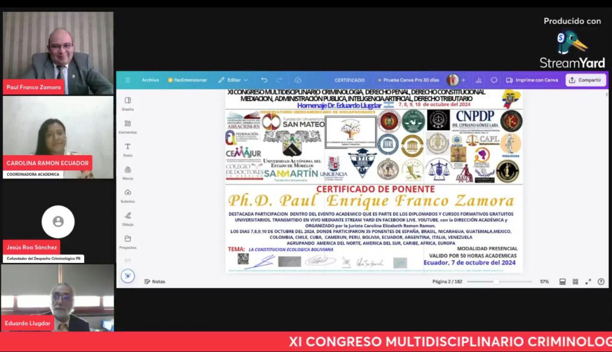 Cabe resaltar que este evento se realiza bajo la coordinación de la Dra. Carolina Elizabeth Ramon Ramon del Ecuador desde la gestión 2020 con más de 30 avales institucionales y académicos, con el objetivo de fortalecer los conocimientos de la comunidad jurídica nacional e internacional que forma parte de cada una de las diferentes versiones.