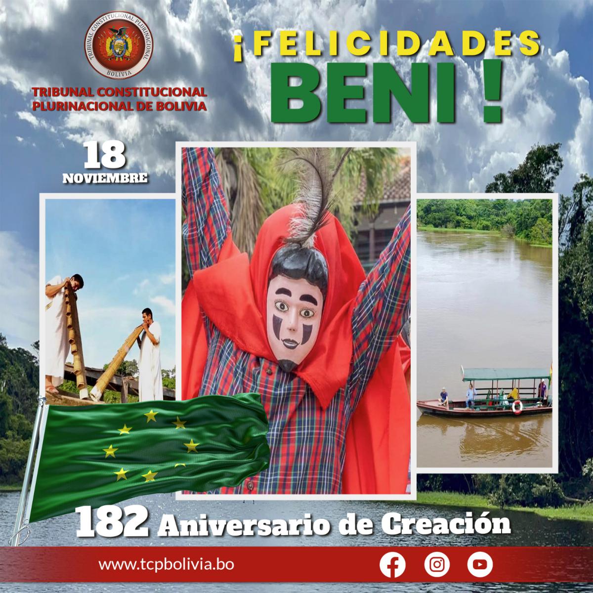SALUTACIÓN Publicación de la entrada:18 de noviembre de 2024 Categoría de la entrada:Noticias Desde el Tribunal Constitucional Plurinacional de Bolivia (TCP), rendimos homenaje al Departamento de Beni, al conmemorarse el 182 Aniversario de su Creación. Etiquetas: Noticias Leer más artículos Entrada anteriorHOMENAJE A LOS 214 AÑOS DE LA GESTA LIBERTARIA DEL DEPARTAMENTO DE POTOSÍ Siguiente entradaMAGISTRADO DEL TCP GONZALO HURTADO ES CONDECORADO POR LA ASAMBLEA LEGISLATIVA DEPARTAMENTAL DE BENI También podría gustarte FELICIDADES TARIJA 15 de abril de 2019 V CONGRESO INTERNACIONAL DE DERECHO PROCESAL CONSTITUCIONAL 18 de noviembre de 2023 Presidente Evo Morales promulga Ley de Creación de Salas Constitucionales 27 de septiembre de 2018