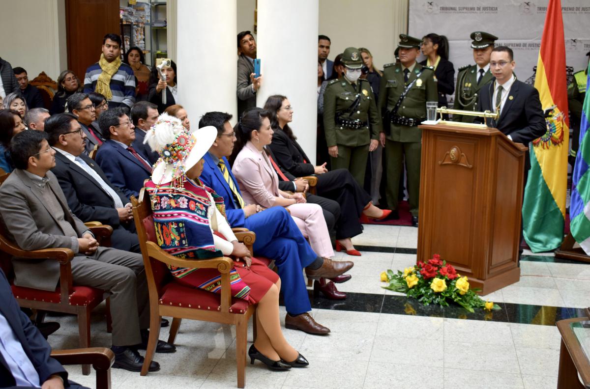 El acto llevado a cabo en instalaciones del Palacio de Justicia del Órgano Judicial, contó con la asistencia de autoridades judiciales, departamentales y nacionales, evento donde se destacó la importancia de fortalecer el sistema judicial boliviano, reafirmando el compromiso con la transparencia y el acceso a la justicia.