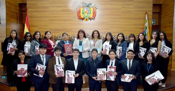 Estudiantes de la nombrada casa de estudios, visitaton la Máxima instancia de resguardo de los derechos y garantías constitucionales; quienes fueron recibidos por la Magistrada MSc. Karem Lorena Gallardo Sejas quien además propicio junto a su equipo de trabajo un espacio de pedagogía constitucional a cargo de la Letrada Selena S. Aguirre C.