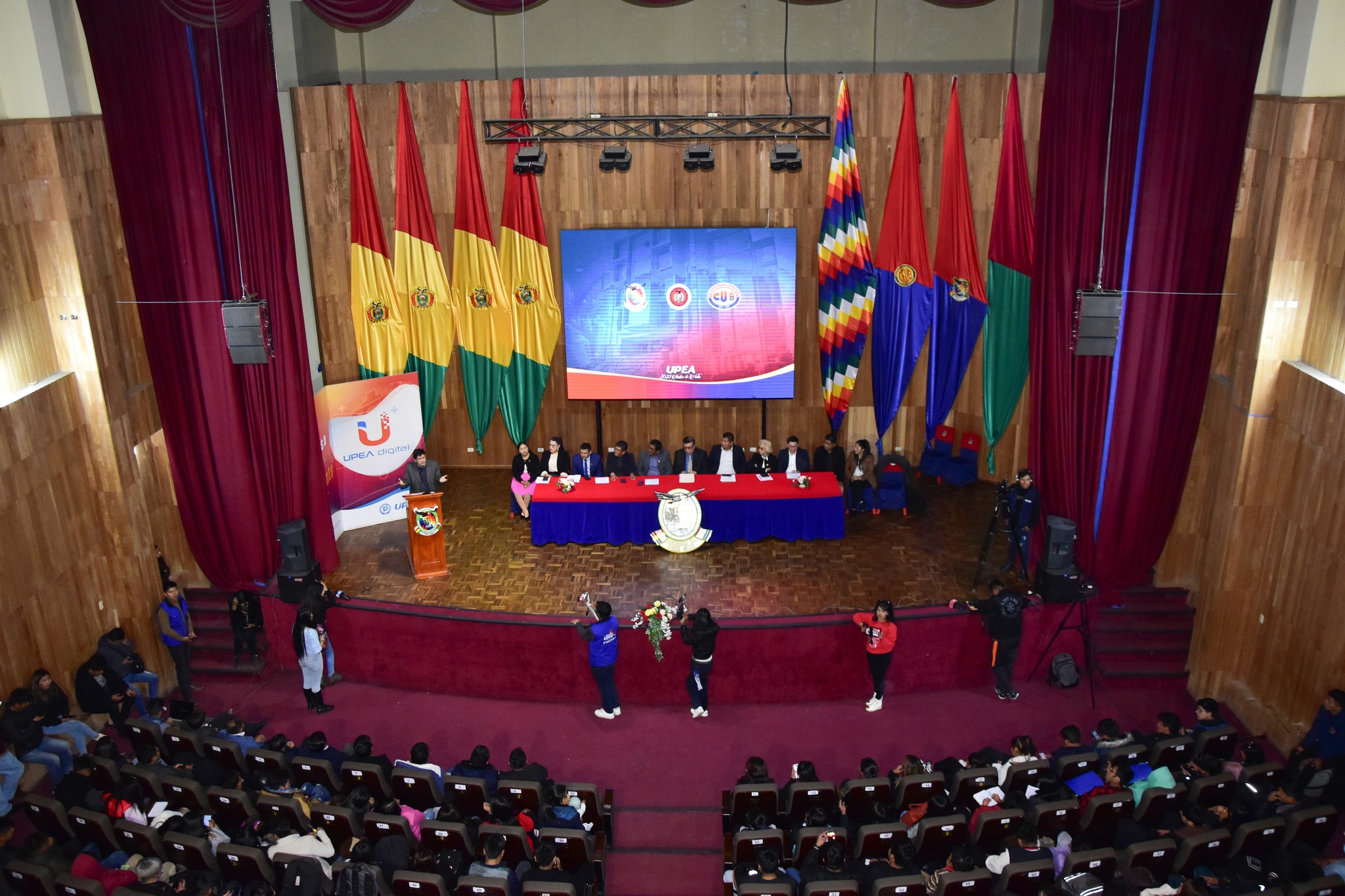 A propósito de lo expresado por sus colegas magistrados, René Yván Espada Navía, Magistrado Decano del TCP, agradeció a la UPEA y le extendió una sincera felicitación por la visión que tiene para ser una Universidad con calidad y no sólo eso, sino también por la pasión para que esta Casa de Estudios Superiores sea dentro del sistema universitario boliviano, una de las más acreditadas en términos académicos. “El Alto tiene altura política, cultural y social, así como una Universidad con altura”, exclamó. Por otra parte, dejó en claro que “en este escenario de crisis que vivimos, el Tribunal Constitucional Plurinacional desde octubre del año pasado -aproximadamente- decidió adoptar una línea de consecuencia con el respeto y la vigencia de la democracia y en enero del presente año firmamos un acuerdo con el Tribunal Supremo Electoral para garantizar la realización de las elecciones generales el 17 de agosto, por ello también, hoy estamos junto a ustedes lanzando este importante ciclo de conversatorios sobre la reforma constitucional”, remarcó.
