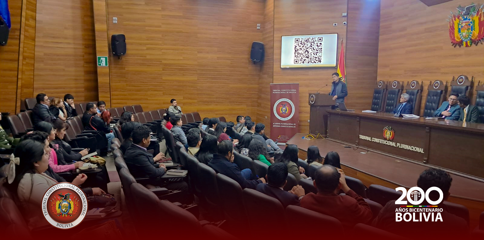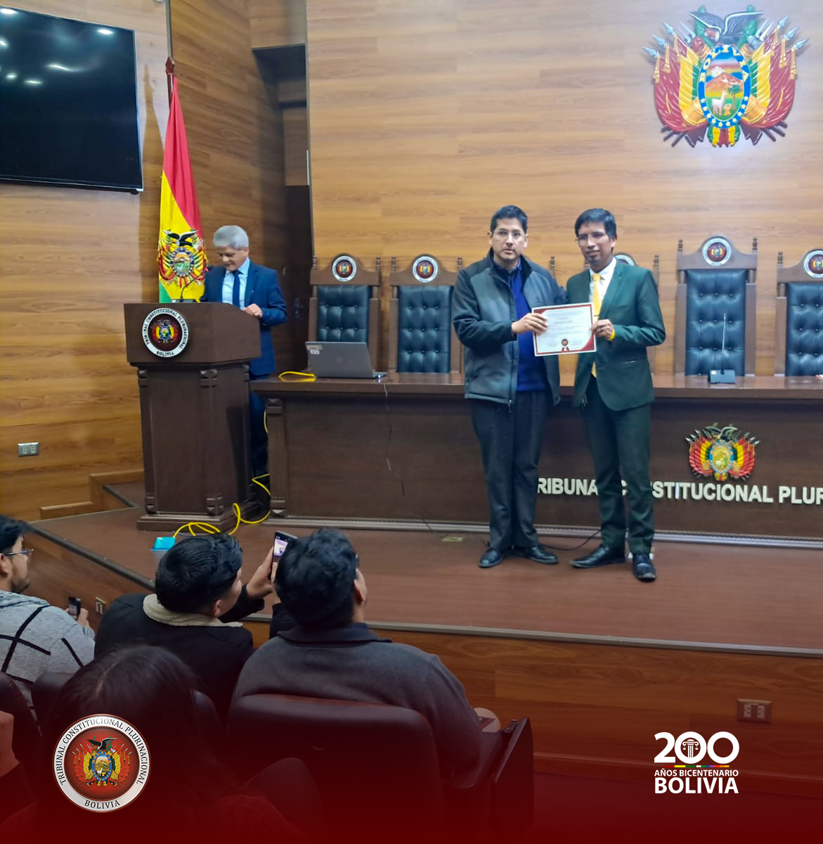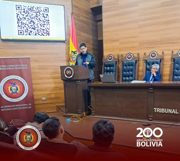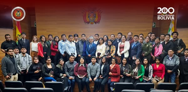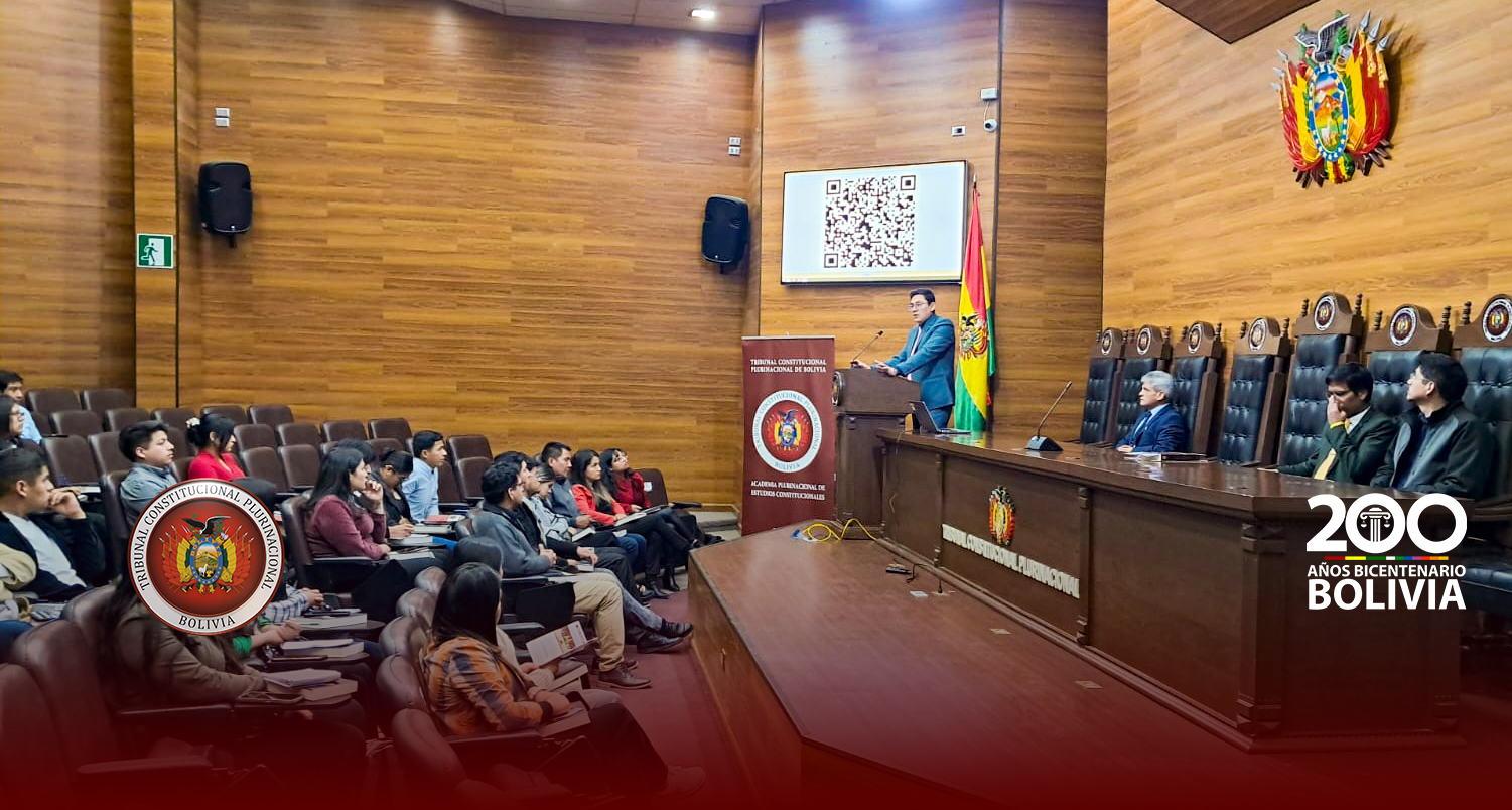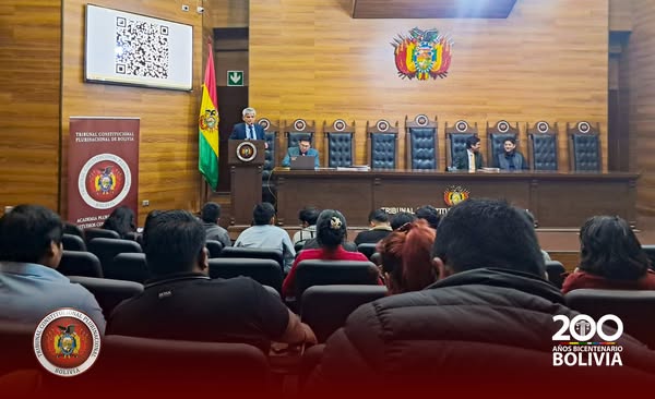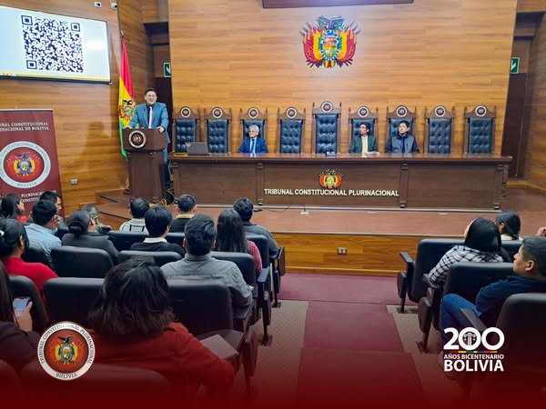 En un acto realizado en el Salón de Honor del Tribunal Constitucional Plurinacional ( TCP) , los Magistrados Edson Dávalos Rojas y Boris Arias López recibieron la visita de más de 50 estudiantes universitarios de diferentes semestres de la Universidad Privada Domingo Savio (UPDS) Sede Sucre, que llegaron acompañados del Lic. Carlos Remberto Antezana Chambi, Docente de Pregrado de dicha casa de estudios superiores.