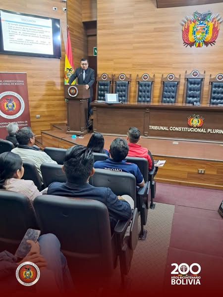 Un grupo de estudiantes y docentes del último año de la Carrera de Derecho de Riberalta, dependiente de la Facultad de Ciencias Jurídicas, Políticas y Sociales de la Universidad Autónoma del Beni «José Ballivián», visitó el Tribunal Constitucional Plurinacional (TCP) y fueron cálidamente recibidos por el Presidente de dicha instancia, Gonzalo Miguel Hurtado Zamorano.
