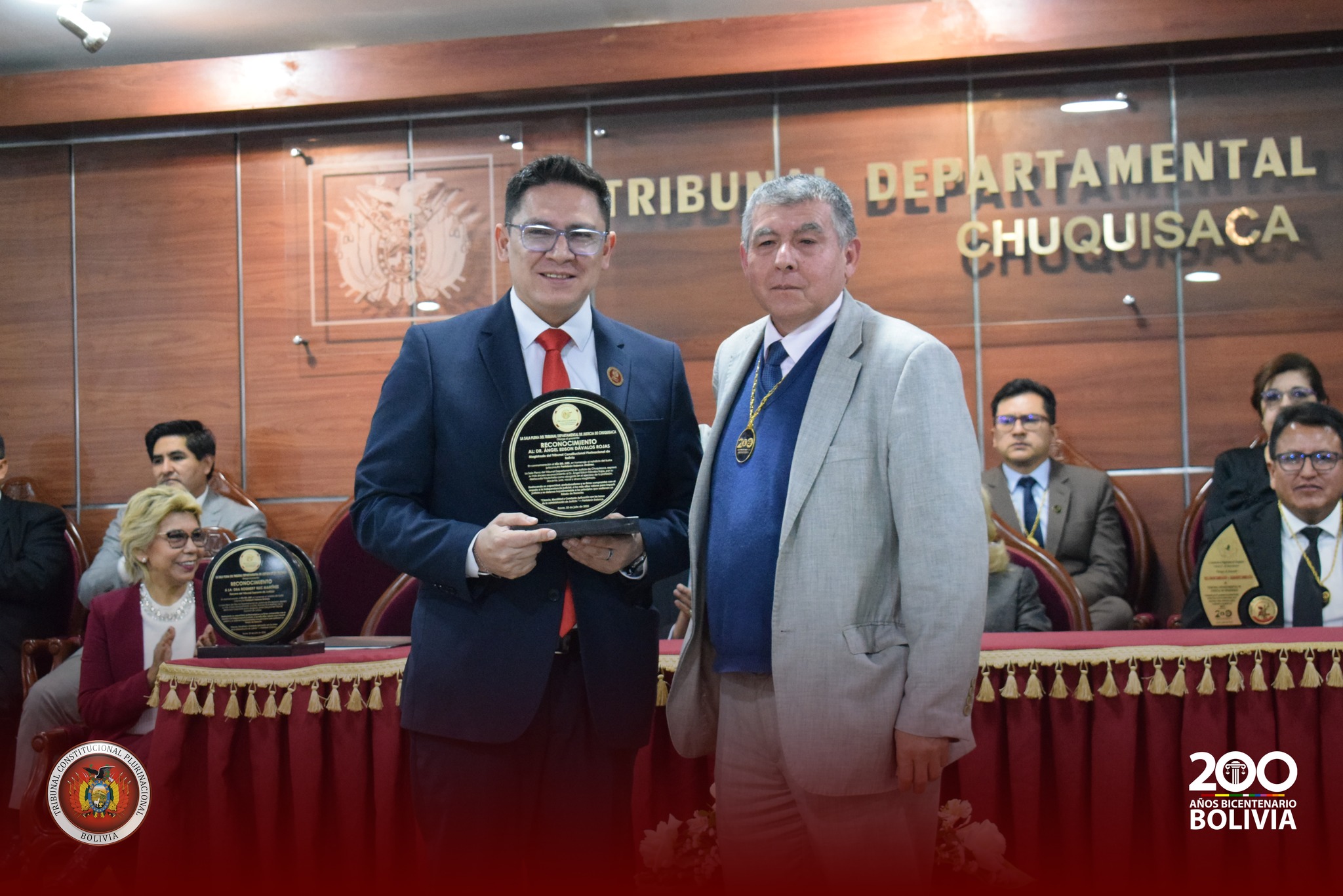 A invitación del Tribunal Departamental de Justicia de Chuquisaca, el Magistrado Ängel Edson Dávalos Rojas y la Magistrada Isidora Jiménez Castro, participaron del acto en conmemoración al Día del Juez Boliviano.