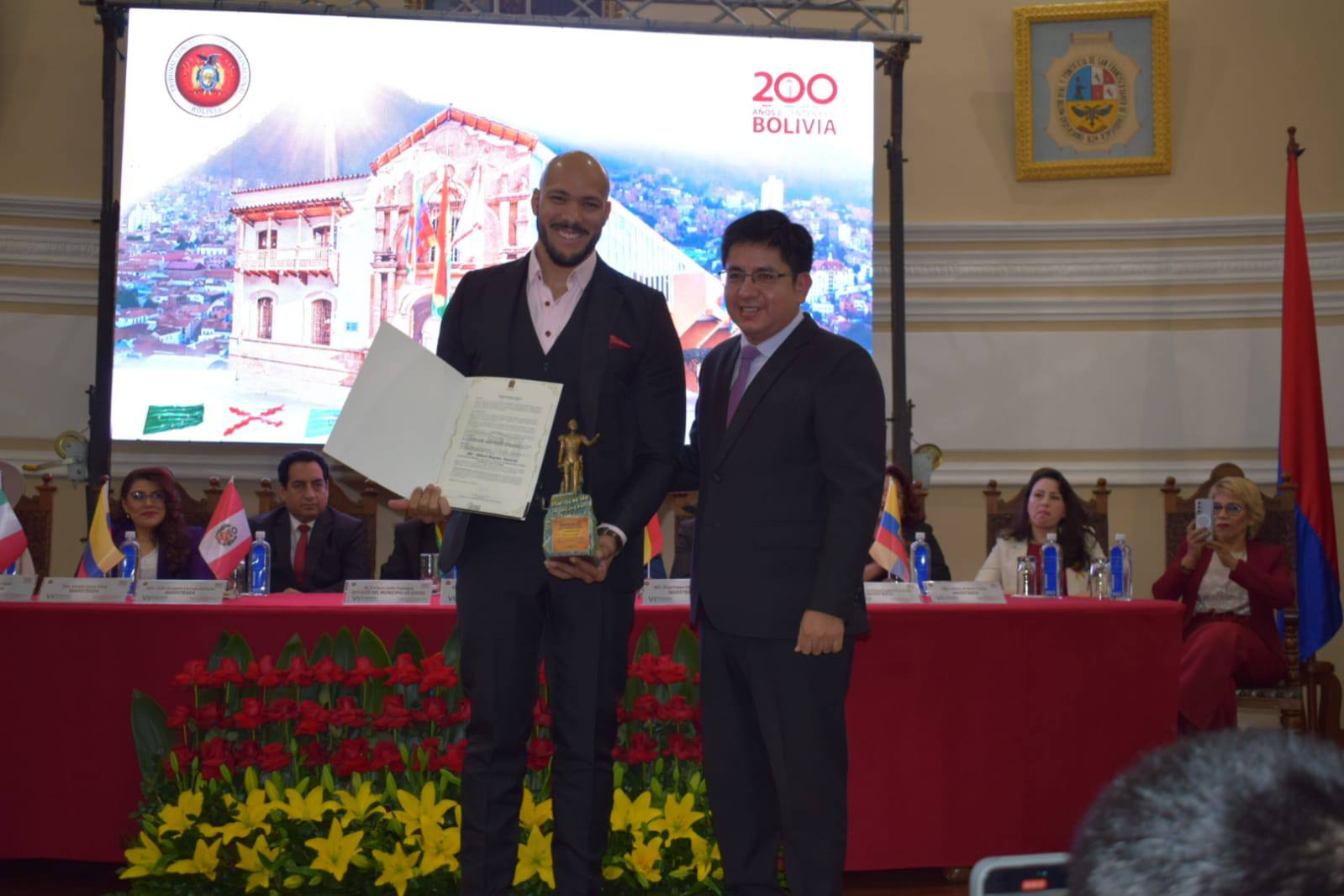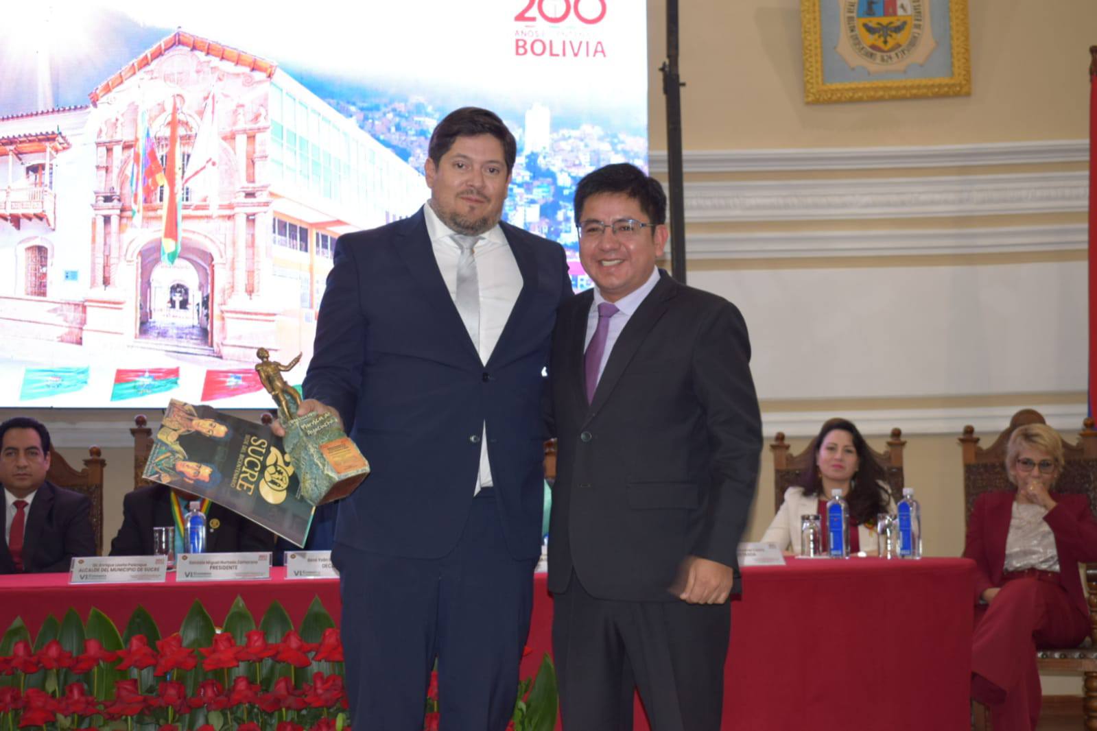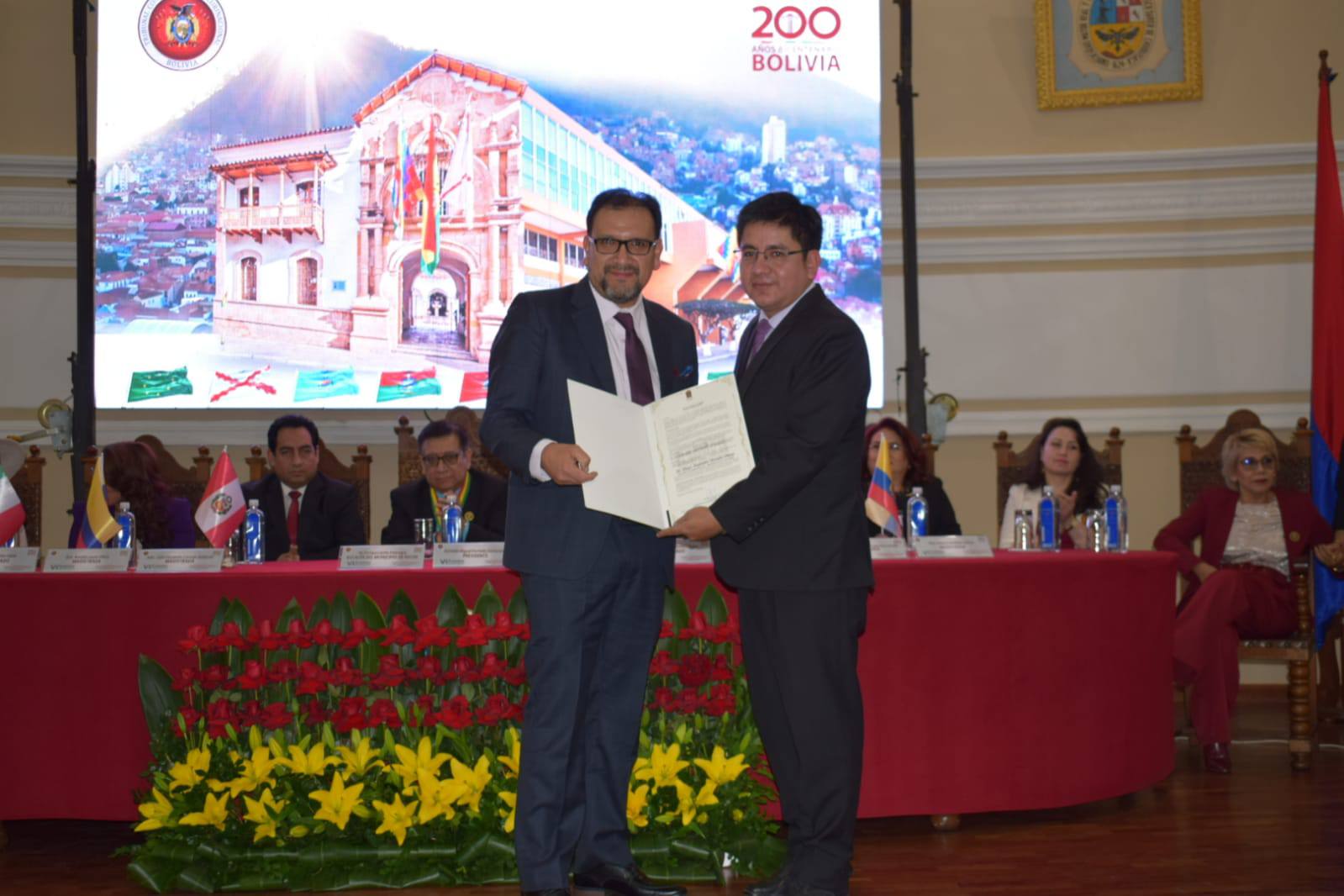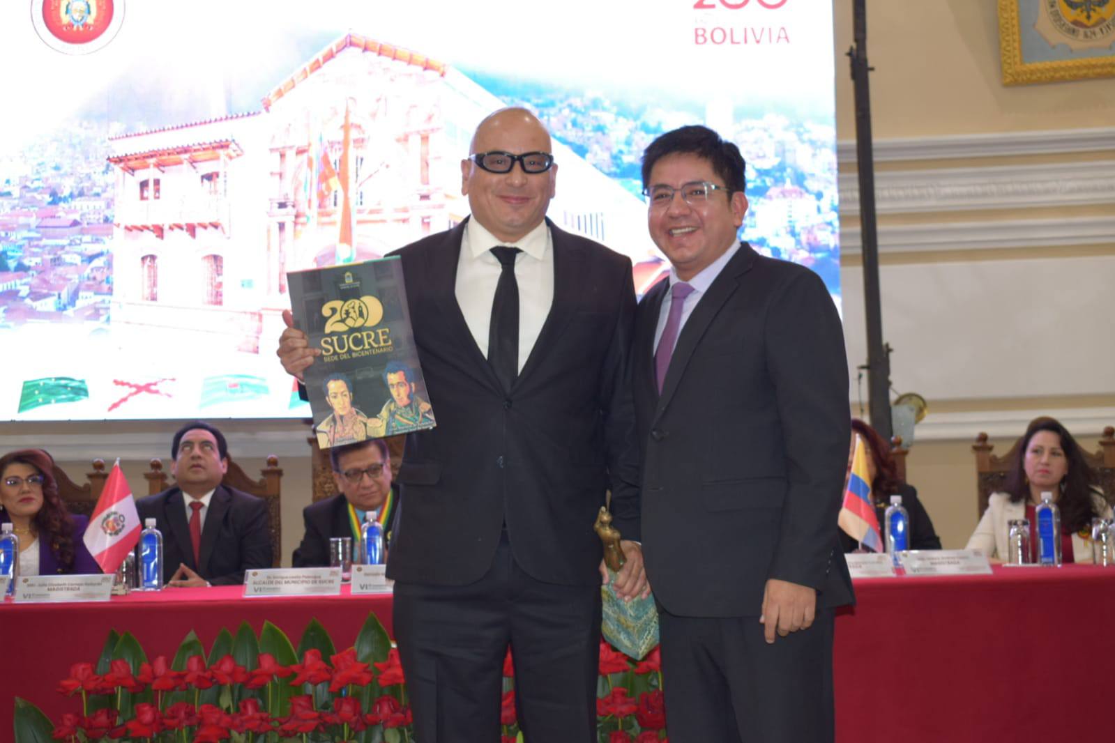 “Saludamos y agradecemos la decisión tan acertada de nuestros Magistrados, de nuestros guardianes de la Constitución, de llevar adelante un evento tan importante para la generación de conocimiento en materia constitucional y más aún para iniciar la conmemoración del Bicentenario”, expresó efusivamente a su turno, Osmar Vargas Salazar, Secretario Municipal General y de Gobernabilidad del Gobierno Autónomo Municipal de Sucre, quien a nombre del Honorable Alcalde de Sucre, Enrique Leaño Palenque, otorgó la estatuilla “Gran Mariscal de Ayacucho” a cada uno de los ponentes bolivianos e internacionales del presente Congreso, mismo que logró reunir la presencia de representantes de los órganos judicial, ejecutivo y legislativo, así como autoridades departamentales, municipales, policiales, académicas y estudiantiles, presidentes y vocales de tribunales departamentales y colegios de abogados de los nueve departamentos de Bolivia.