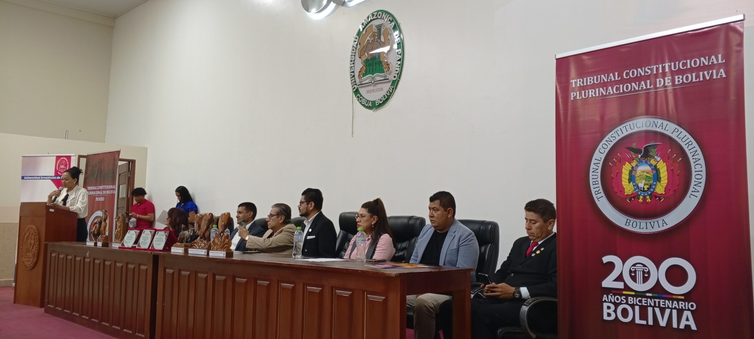 El Tribunal Constitucional Plurinacional (TCP), a la cabeza de sus mรกximas autoridades, en directa coordinaciรณn con la Confederaciรณn Universitaria Boliviana (CUB) y la Universidad Amazรณnica de Pando (UAP), llevรณ adelante con un rotundo รฉxito el Primer Conversatorio Acadรฉmico โHacia la Reforma de la Constituciรณnโ, en la ciudad de Cobija, con la participaciรณn de mรกs de 200 estudiantes y docentes de esta Casa de Estudios Superiores y el planteamiento de cinco ejes fundamentales para la Reforma de la Constituciรณn.