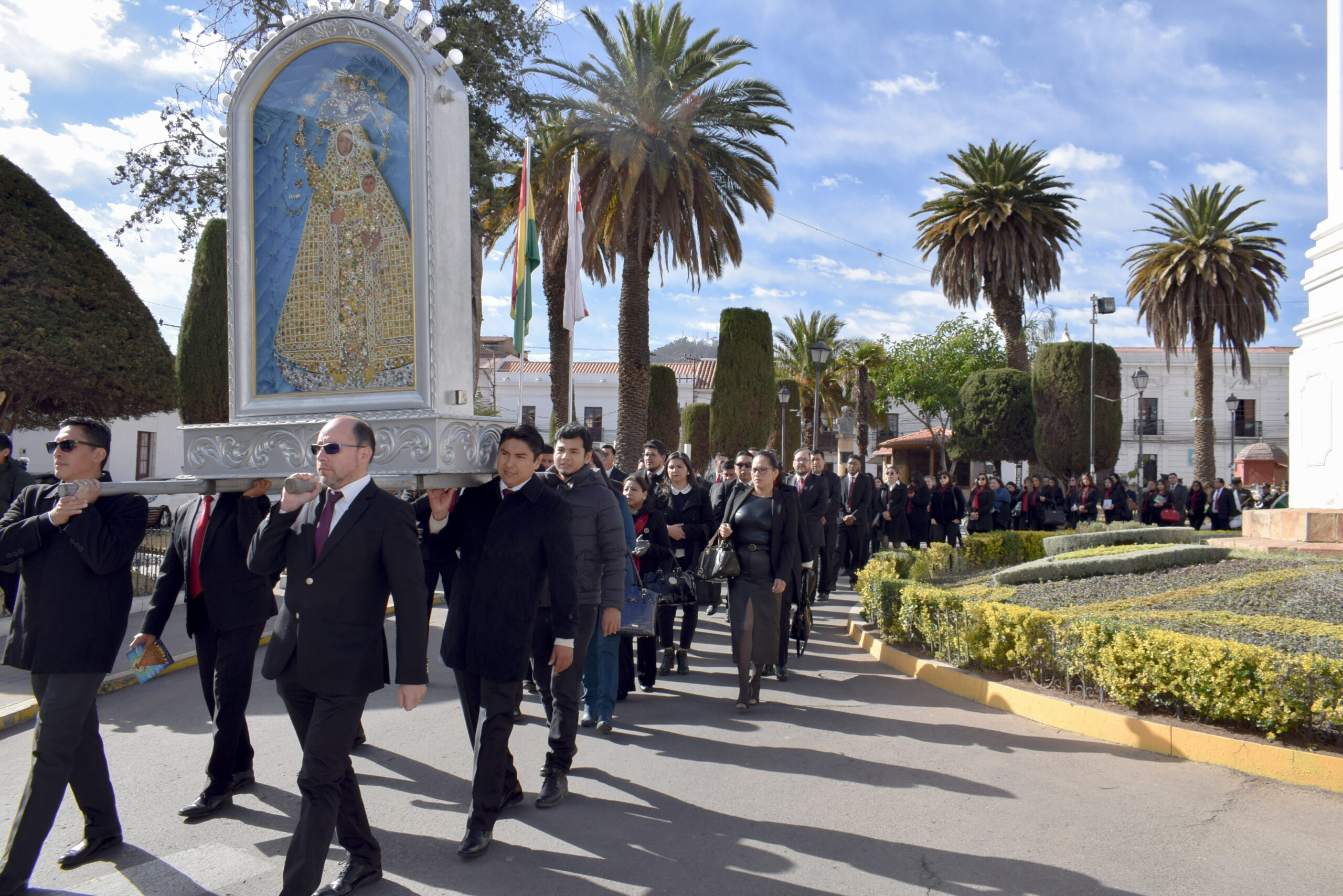 ES UNA TRADICIÓN ANUAL QUE LA IMAGEN DE LA VIRGEN DE GUADALUPE VISITE DIFERENTES INSTITUCIONES, INCLUYENDO AL T.C.P, VISITAS QUE SE REALIZAN EN EL MARCO DE LAS FESTIVIDADES DE LA PATRONA RELIGIOSA DE LA CIUDAD DE SUCRE INCLUYENDO PROCESIONES Y MISAS EN SU HONOR.