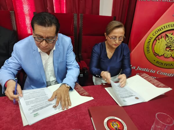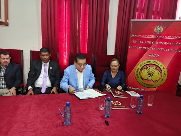El Tribunal Constitucional Plurinacional (TCP), legalmente representado por su Presidente Gonzalo Miguel Hurtado Zamorano y la Representaciรณn Distrital del Consejo de la Magistratura del Beni, a la cabeza de Jackelin Pinto Pizarro, encargada de dicha instancia, lograron materializar la firma de un โConvenio de Cooperaciรณn Acadรฉmica Interinstitucionalโ, en el marco de las atribuciones que la Ley otorga a ambas instituciones.