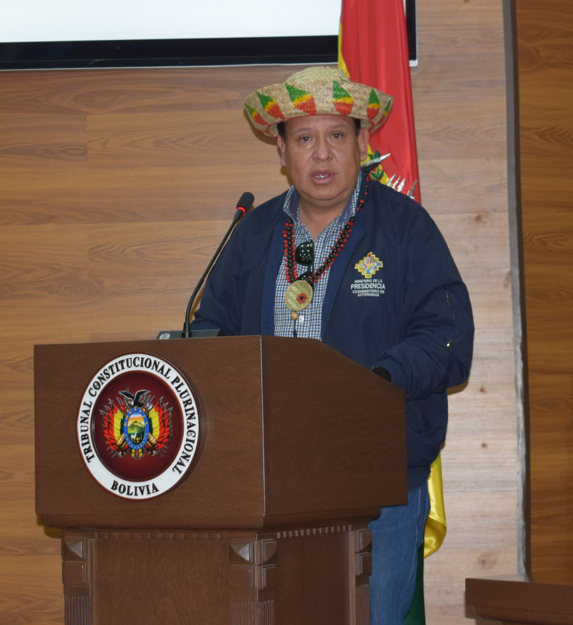 Este acto también fue acompañado por el Viceministro de Autonomías, Martin La Mar Velasco, quien a nombre del Ejecutivo auguró que este proyecto tenga buenos resultados con el trabajo de los Magistrados , “ Este acto es el reflejo de lo que representa nuestro país cuando se habla de diversidad , siendo los pueblos indígenas ahora reconocidos por nuestra Constitución Política del Estado” , expresó.