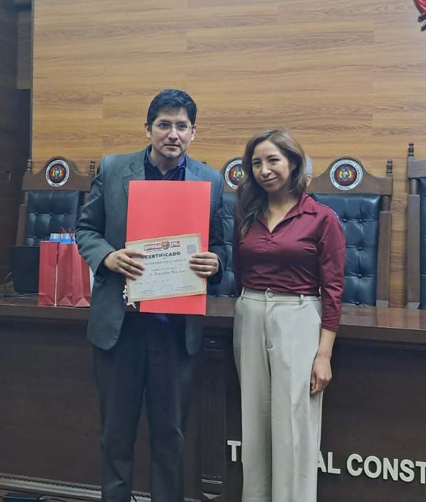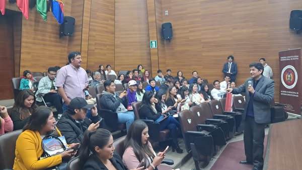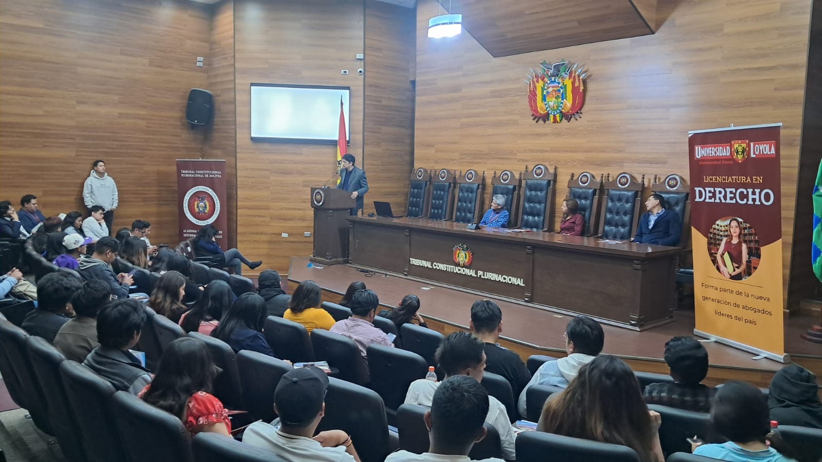 En el conversatorio, el PhD. Boris Wilson Arias López, magistrado electo por el departamento paceño, expuso la temática “ Rol del Tribunal Constitucional Plurinacional, también impartieron sus conocimientos el Dr. Patricio Céspedes Serrano con el tema “Apuntes Introductorios del Control de Constitucionalidad en Bolivia; Dr. Henry Plata Mamani “Anatomía de una Sentencia Constitucional: Forma, Fondo y Función y el Dr. Luis Fernando Loma Aragonés “ Conflicto de competencias entre el nivel central del Estado y las Entidades Territoriales Autónomas desde una óptica de decisión política.