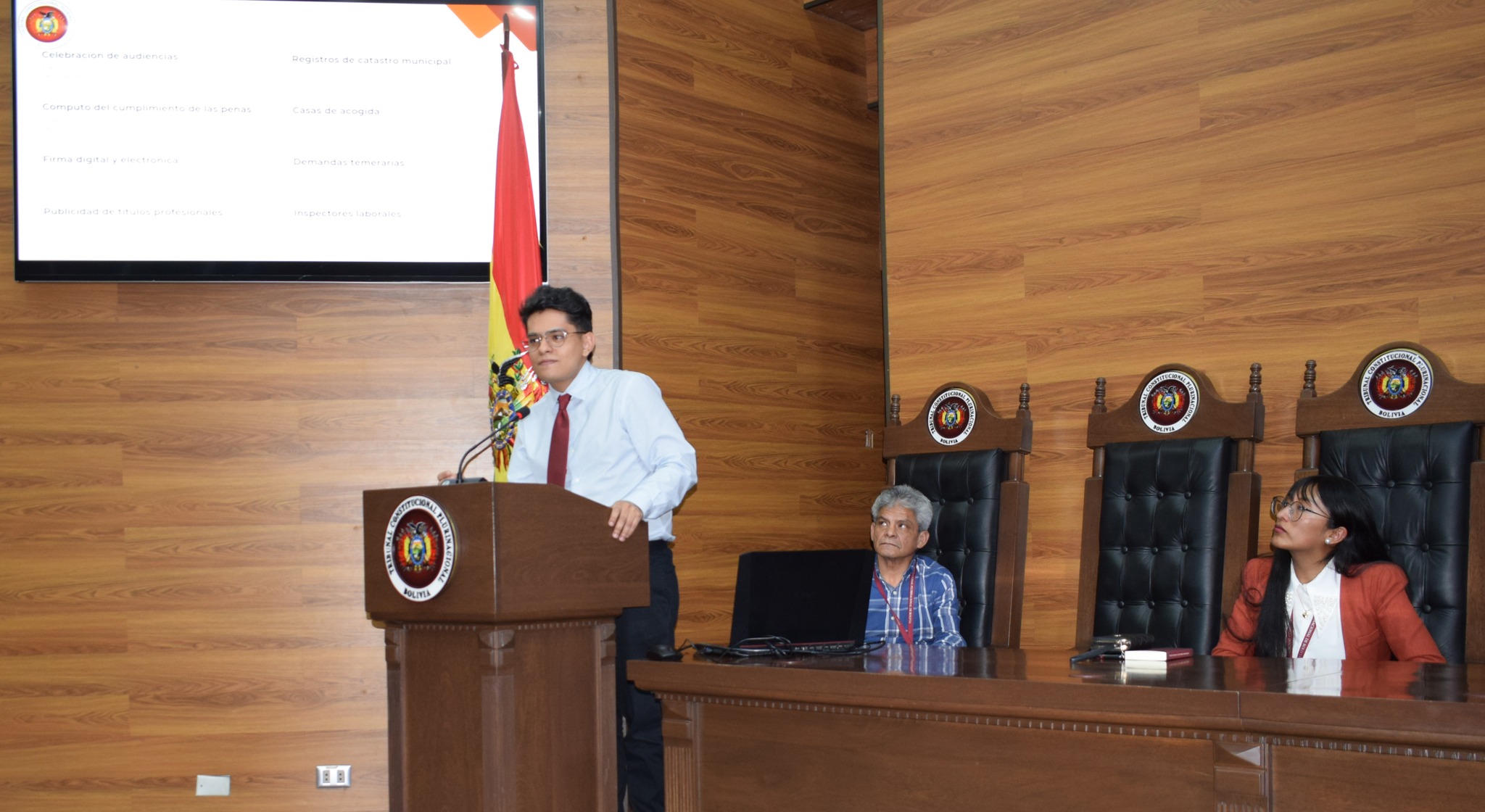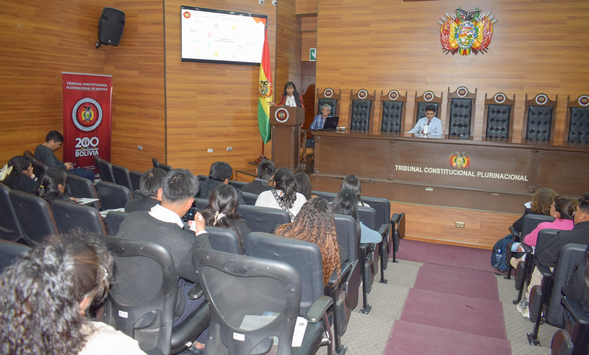Esta visita académica fortaleció los conocimientos prácticos de los universitarios que gracias a la coordinación con la Academia Plurinacional de Estudios Constitucionales , contó con las exposiciones relacionadas a las “Funciones del Tribunal Constitucional Plurinacional y Jurisprudencia Constitucional” y “La Acción de Protección de Privacidad como garantía constitucional del Derecho a la Autodeterminación Informativa: Objeto, alcance y estructura procesal”, ponencias realizadas por María Jhoselyne Tambo Lima ( Abogada de Despacho) y Luis Fernando Loma Aragonés ( Abogado de Despacho).