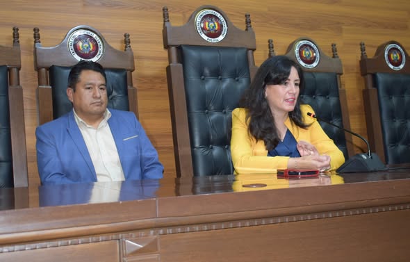 La Carrera de Derecho de la UPDS–Oruro realizó una visita académica al Tribunal Constitucional Plurinacional (TCP), con el propósito de fortalecer la formación jurídica de sus estudiantes. La delegación fue recibida por la Presidenta del TCP, Paola Verónica Prudencio Candia, junto al letrado Dr. Lolín Choque y la Dra. Lorena Caballero.