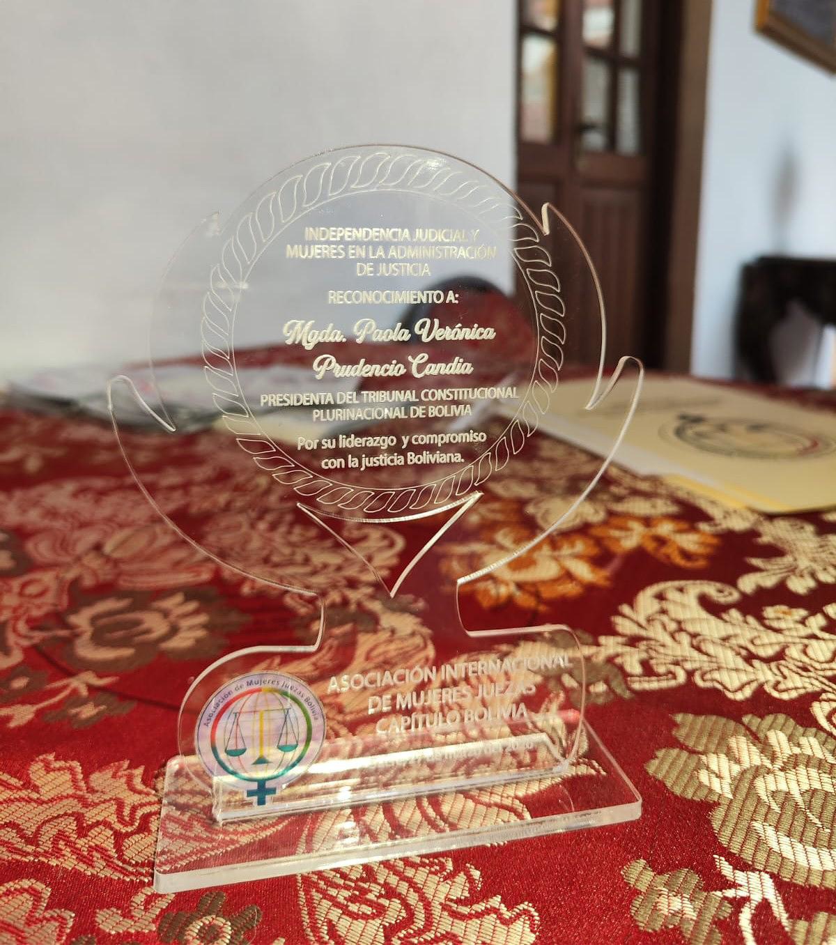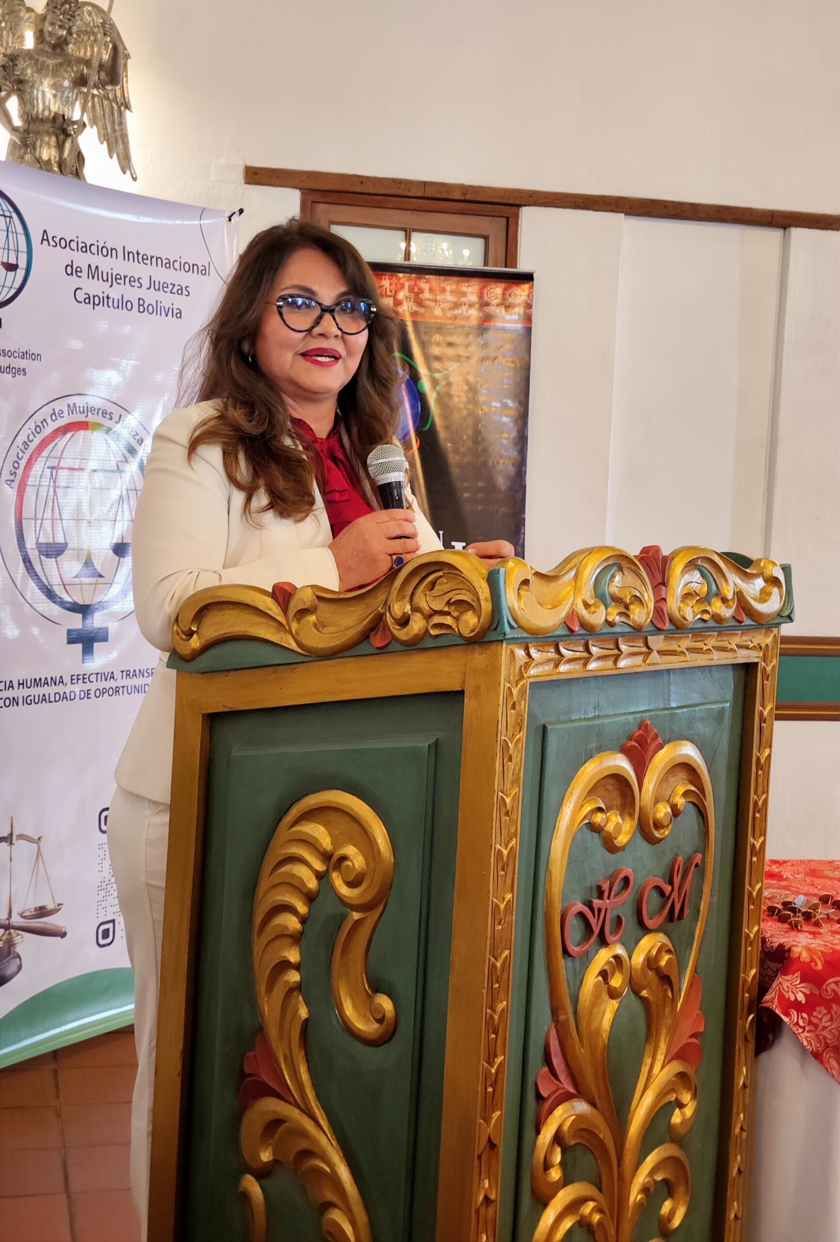 En la ocasión, la exmagistrada Nuria Gonzales Romero, Presidenta de la Asociación Internacional de Mujeres Juezas – Capítulo Bolivia, entregó la membresía internacional a la Dra. Paola Verónica Prudencio Candia, Presidenta del Tribunal Constitucional Plurinacional, simbolizando su incorporación a esta importante red de mujeres que impulsan una justicia independiente y con rostro humano.